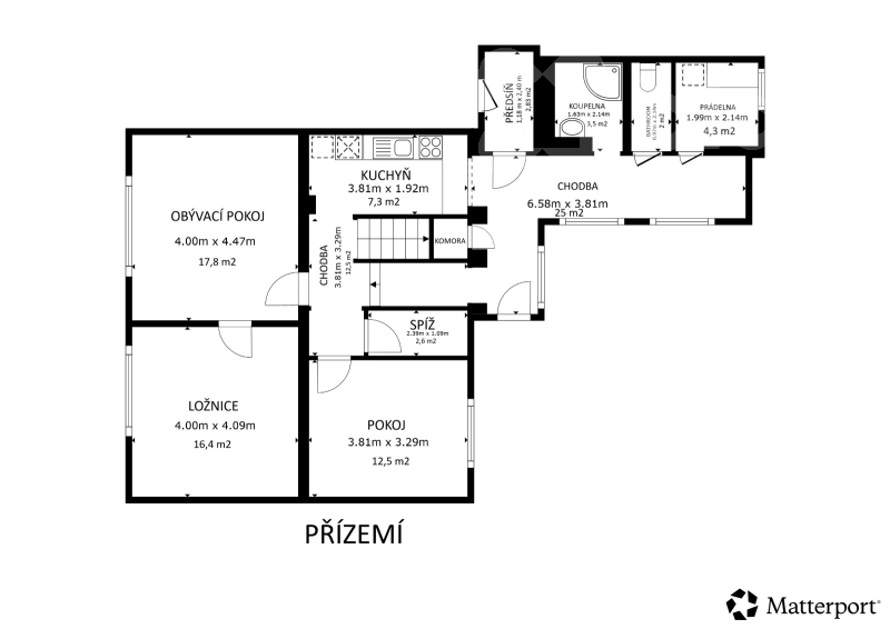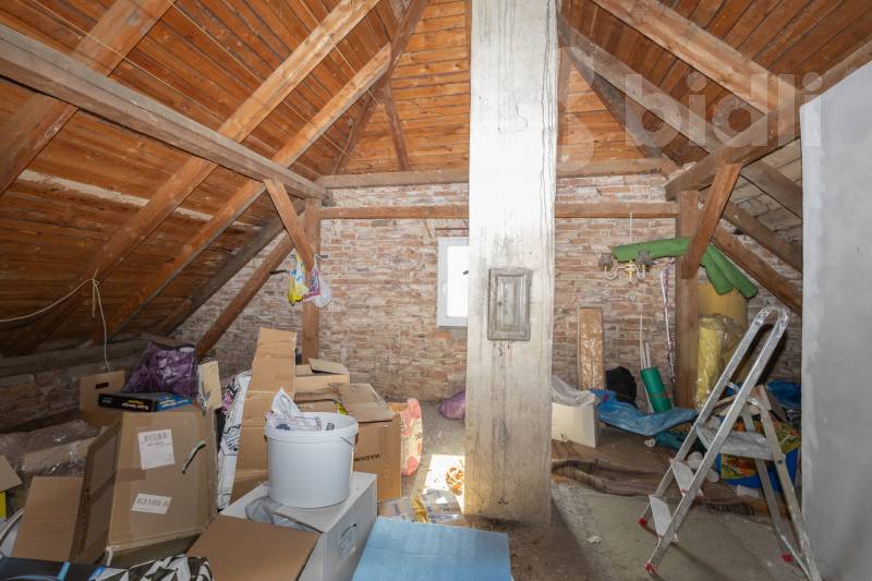 Dále dům nabízí prostornou půdu, na kterou vede pevné schodiště přímo z domu. Tento prostor nabízí zajímavý potenciál pro budoucí rozšíření bydlení, například formou vybudování dalšího obytného podlaží nebo podkrovních místností.