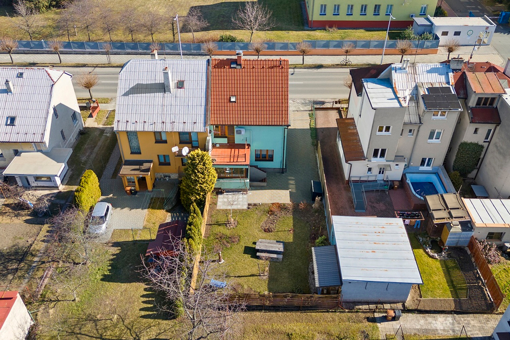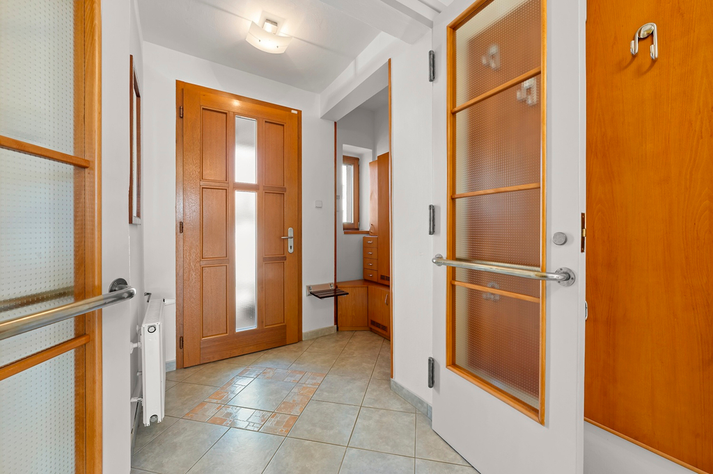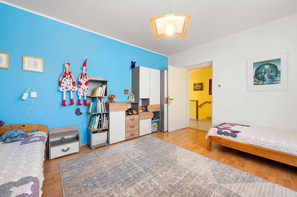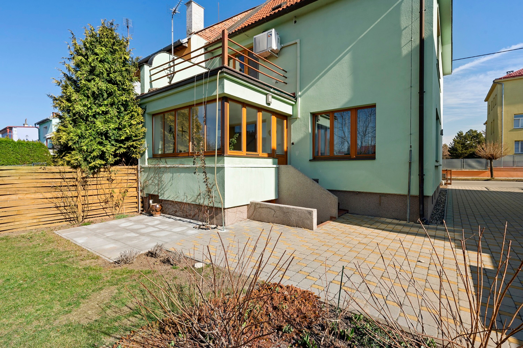 Dispozice domu je ideální pro rodinné bydlení. Výhodou je spousta prostoru se samostatnými vstupy do místností nebo propojení s krásnou zahradou, která nabízí prostor pro relaxaci, zahradničení a trávení volného času s rodinou. Dům je kompletně podsklepený - 4 samostatné místnosti plus kolárna, v 1.NP je prostorný obývací pokoj, kuchyně, zimní zahrada/jídelna a toaleta, ve 2.NP dětský pokoj, ložnice, koupelna a terasa orientovaná do zahrady a ve 3.NP další pokoj a menší pracovna.