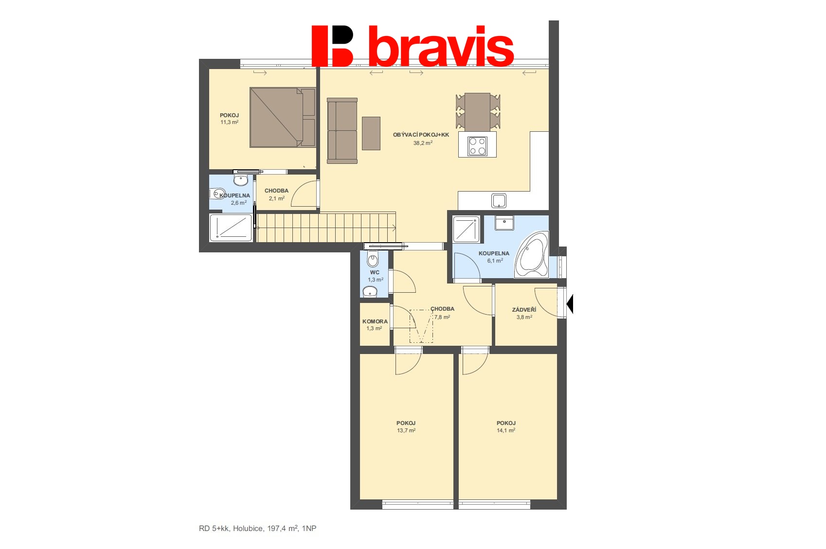 Nabízíme k prodeji právě dokončující stavbu mimořádně prostorného polořadového rodinného domu o dispozici 5+kk s užitnou plochou 197,4 m² na pozemku o velikosti 1126m², v žádané lokalitě Holubice u Brna. Nemovitost, která je dispozečně řešena jako polořadový dům, bude ve vysokém standardu dokončena na konci podzimu.