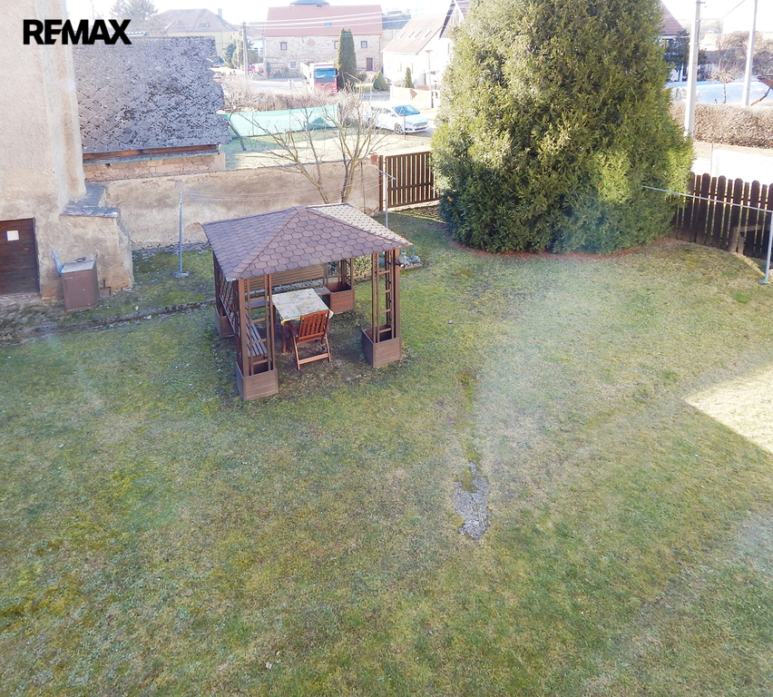 Vjezd na pozemek je přímo z obecní komunikace, je rovinatý o celkové ploše 1 285 m2, částečně zatravněný, upravovaný, s ovocnými stromy. Na pozemku se také nachází kůlna a pergola.