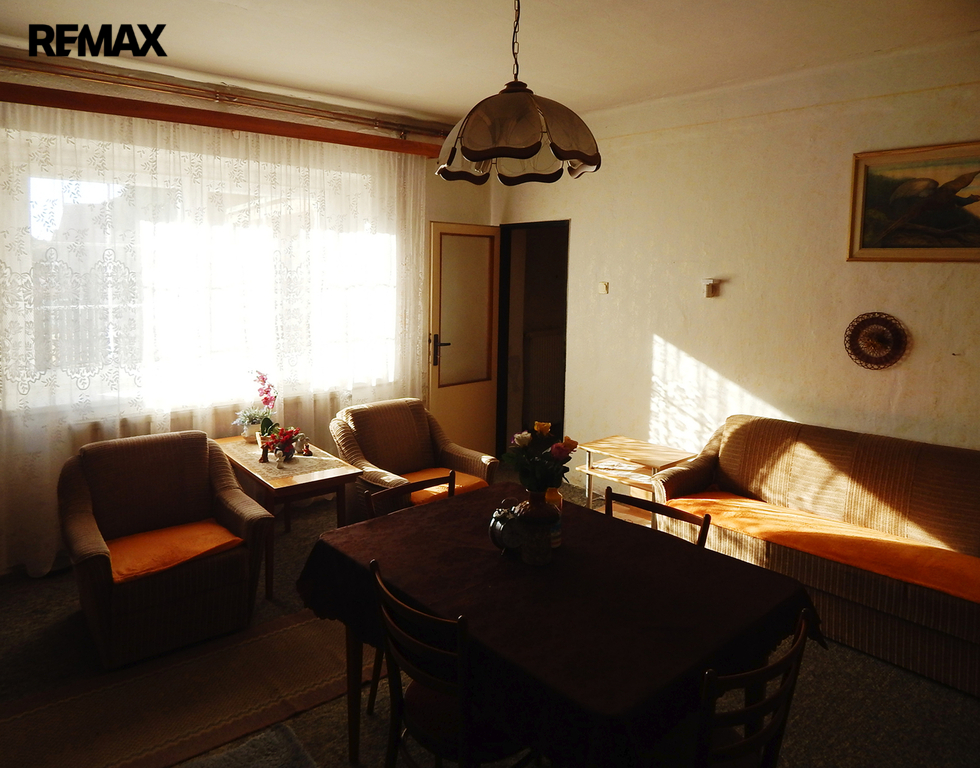 Jedná se o dům ze 40tých let s dispozicí 6+1 se stodolou. Dům je napojen na obecní kanalizaci a na hranici pozemku je přípojka na vodovod. Nyní je vodovodní řád napojen na vlastní studnu. Vytápění je řešeno ústředním topením ohřívaným plynovým kotlem. V domě najdeme v přízemí předsíň, chodbu, 3 pokoje kuchyň a WC. V 1. patře potom další 3 pokoje, velký půdní prostor a i v dalším patře půdu. Do stodoly je možno vjet dvěma vraty pro parkování vozidel, a lze jí využít i k dalším činnostem. Objekt je možno využít nejen k celoročnímu bydlení, ale také jako chalupu. Dům lze také snadno investicí přestavět na více bytových jednotek a na pozemku postavit další dům.