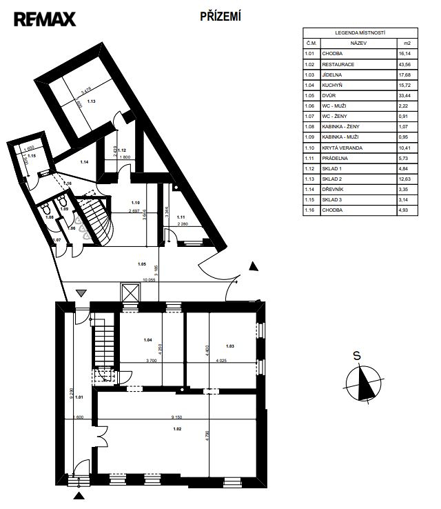 půdní prostor 107 m² (možnost využití např. pro ubytování nebo rozšíření provozu)