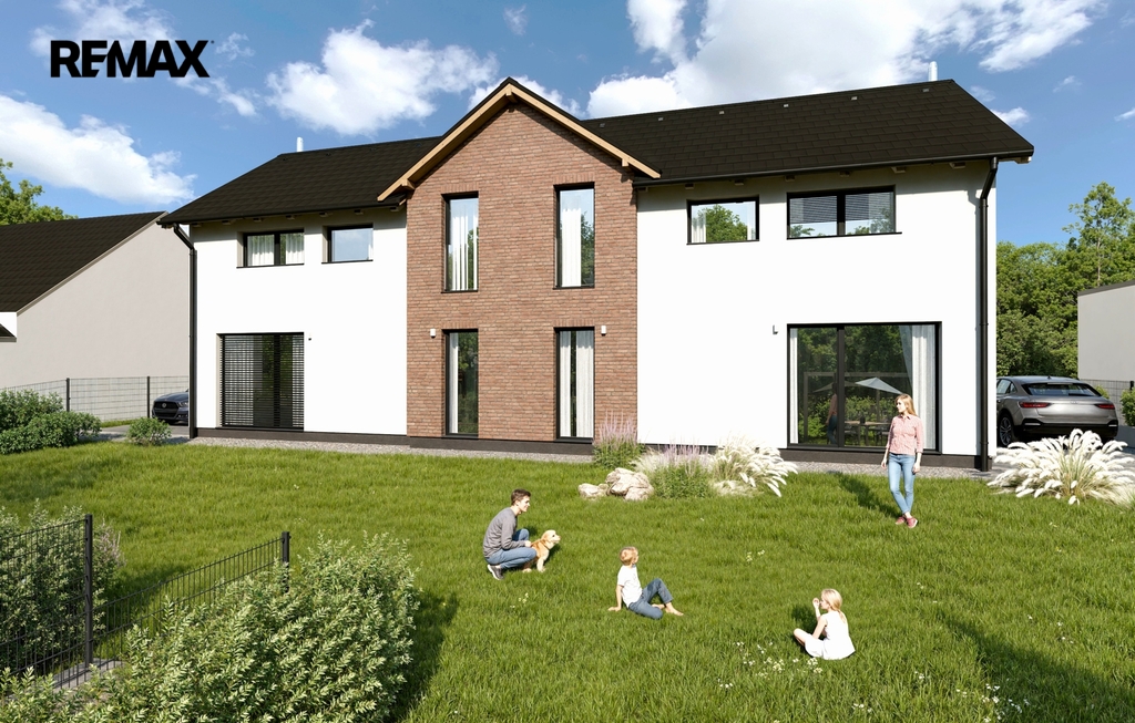 Dvojdomek - každý část v dispozici 5+kk + šatna o užitné ploše 95m2 + pozemek / zahrada o výměře cca 612m2.