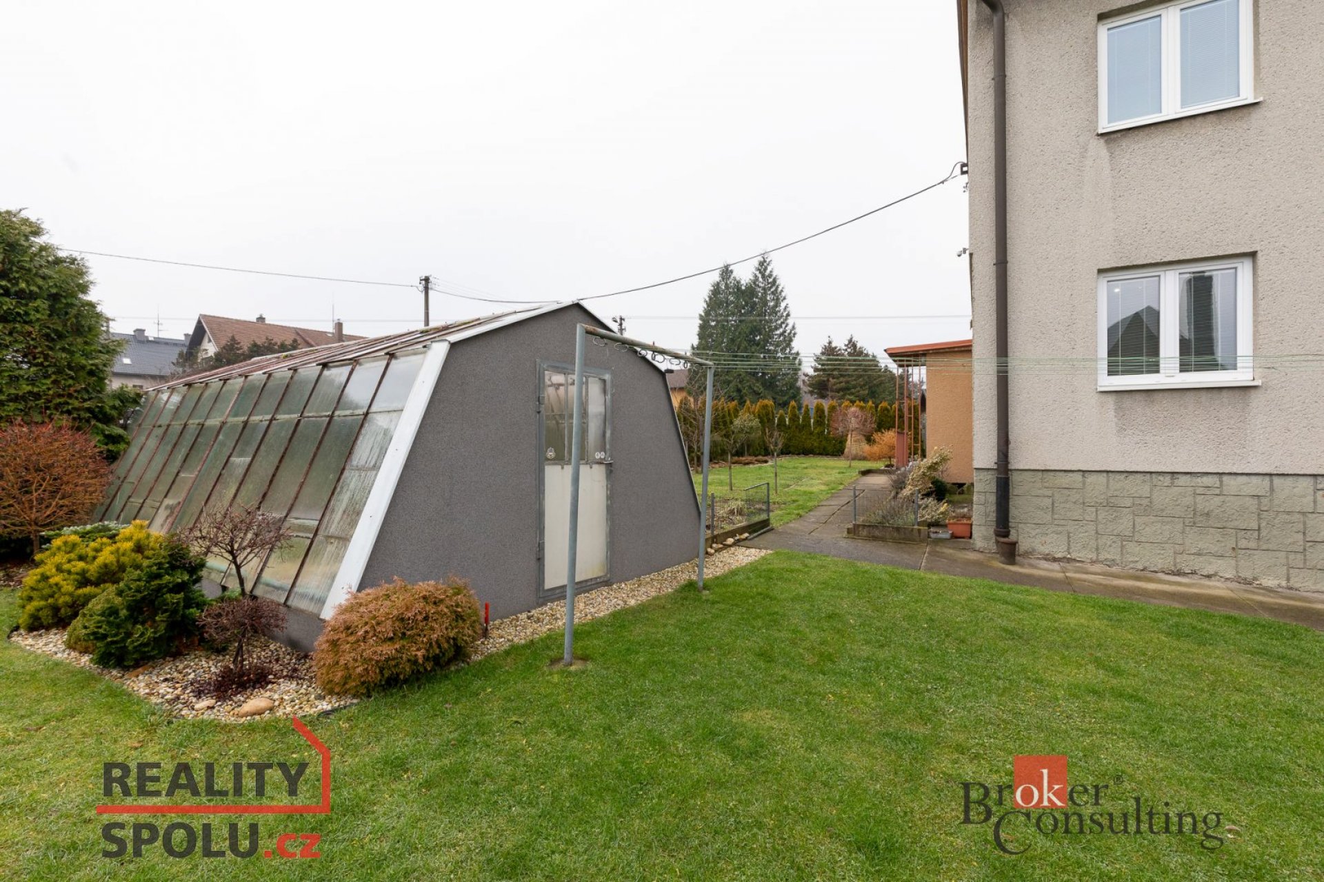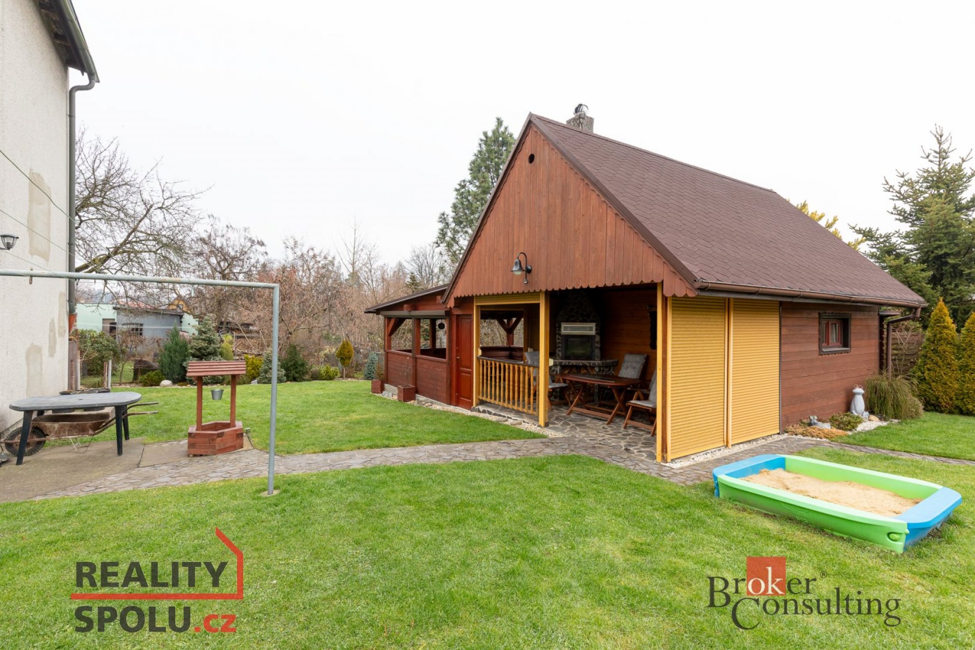 Součástí nemovitosti je udržovaná zahrada, zahradní chata s prostornou verandou vhodná i k celoročnímu užívání. Na pozemku se dále nachází bazén, venkovní krb a skleník, které dotvářejí příjemné zázemí pro relaxaci i rodinné využití.