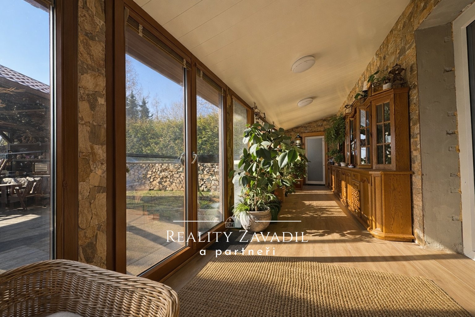 Nemovitost je situována na pozemku o rozloze 1084m2, který poskytuje dostatek soukromí a klidu. Lodžie o rozloze 9 m² nabízí místo k relaxaci s výhledem do okolní přírody. Dům je ve velmi dobrém stavu, s cihlovou konstrukcí a novou sedlovou střechou z pálených tašek. K dispozici je také bazén, zimní zahrada a altán, který umožňuje relaxaci a odpočinek venku.