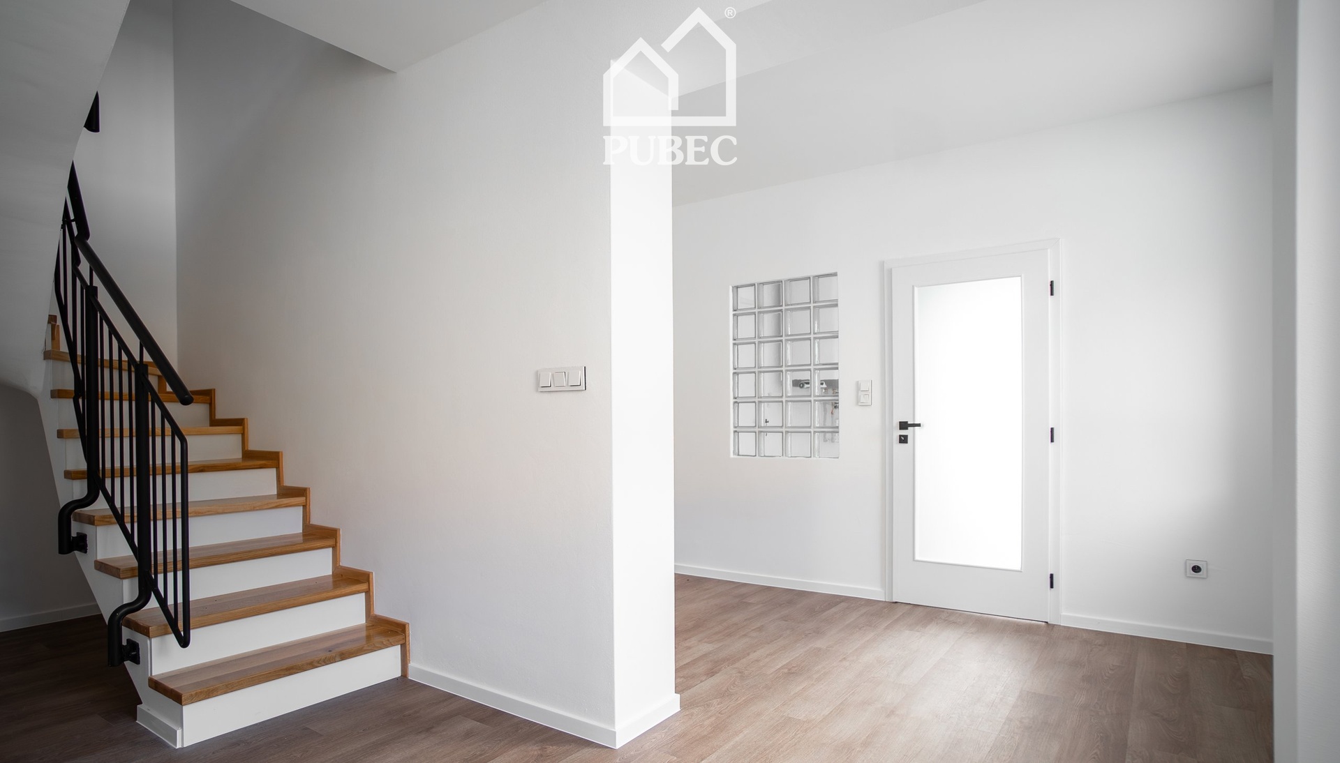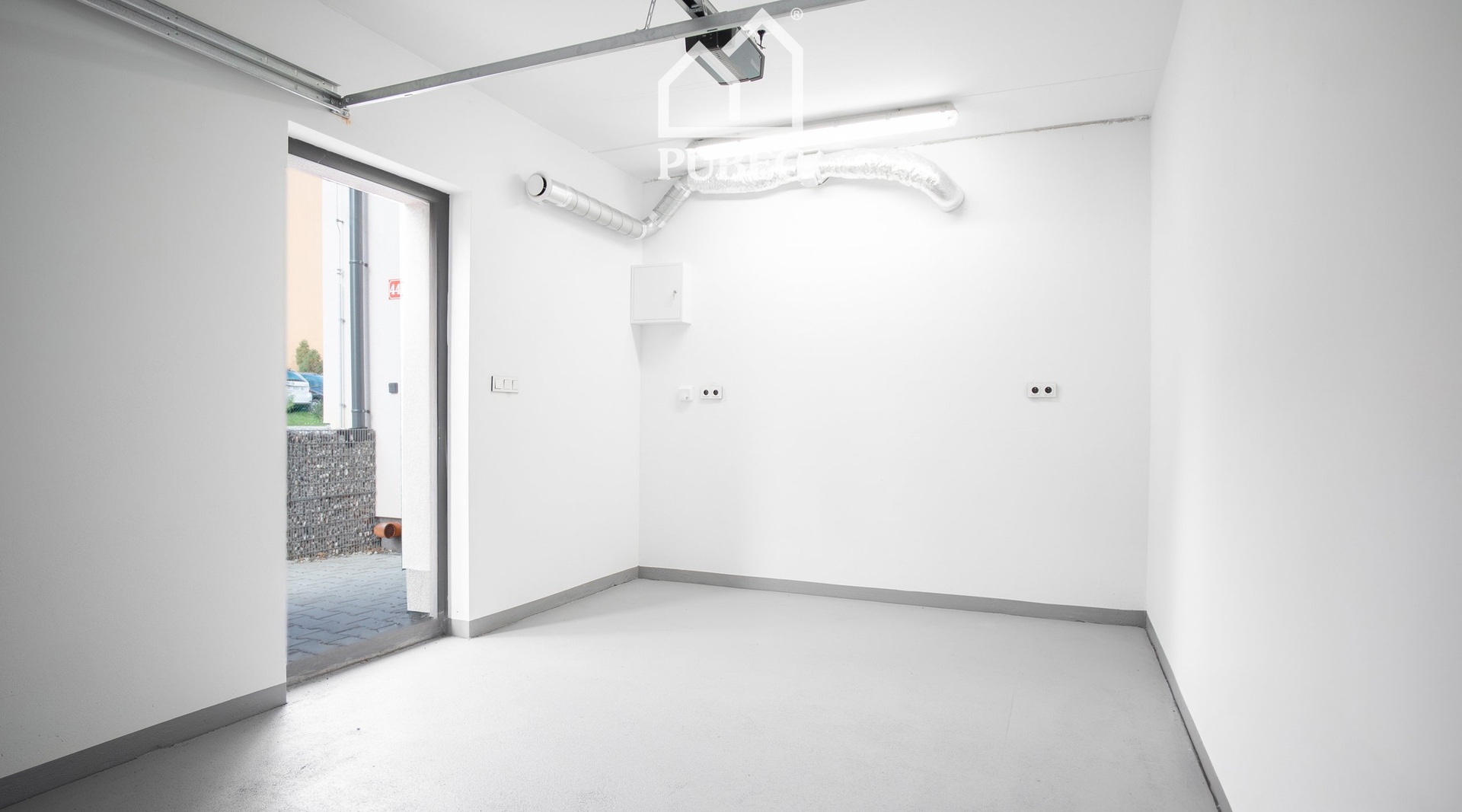 Přízemí - vstupní prostor, kopelna se sprchovým koutem a WC, kuchyně s moderní kuchyňskou linkou včetně spotřebičů, prostorná obytná místnost se vstupem na zahrádku, samostaně přístupná vytápěná garáž.