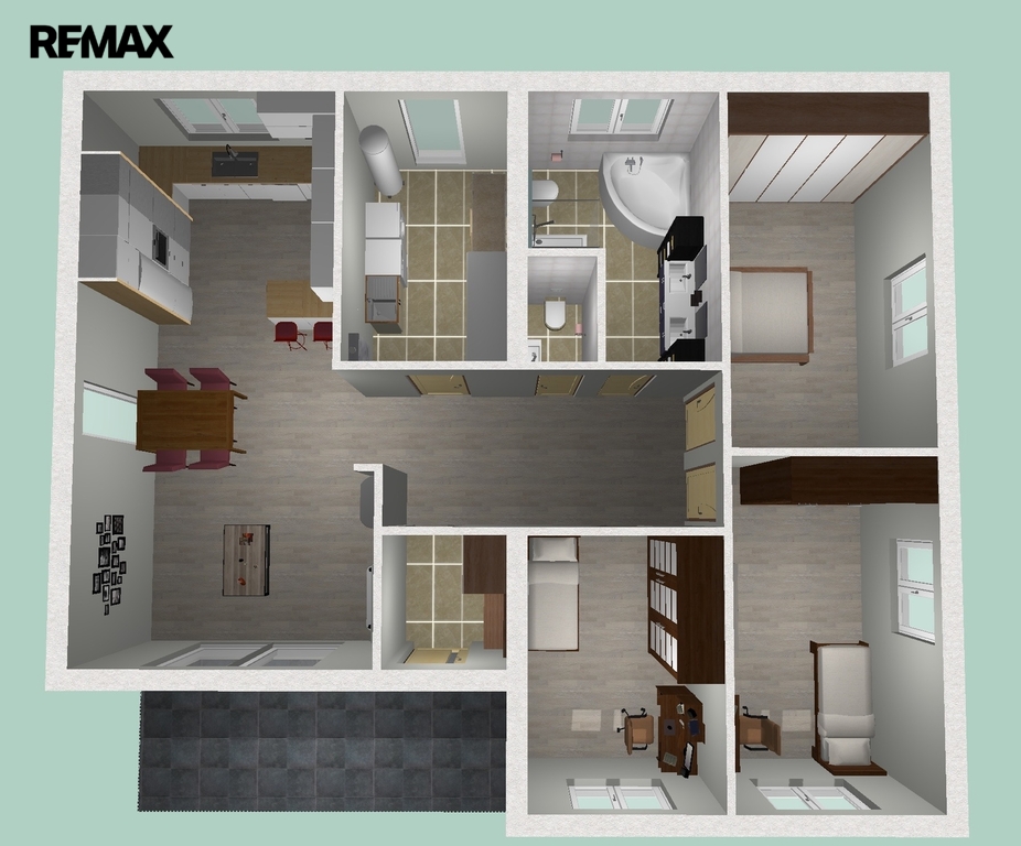 - Anhydritová podlaha – tloušťka 6 cm, včetně podlahové krytiny vinyl + dlažba dle vizualizace