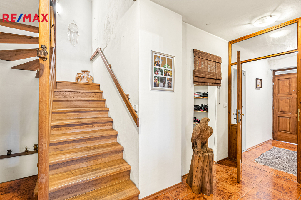 • Vytápění – jako zdroj tepla a ohřev teplé vody je ve sklepě ocelový teplovodní zplyňovací kotel na spalování kusového dřeva, akumulační nádrž o obsahu 1000L - 3kusy. Momentálně je dům vytápěn krbovými kamny s výměníkem. Ohřev vody kotlem, v případě vytápění krbem – ohřev boilerem.