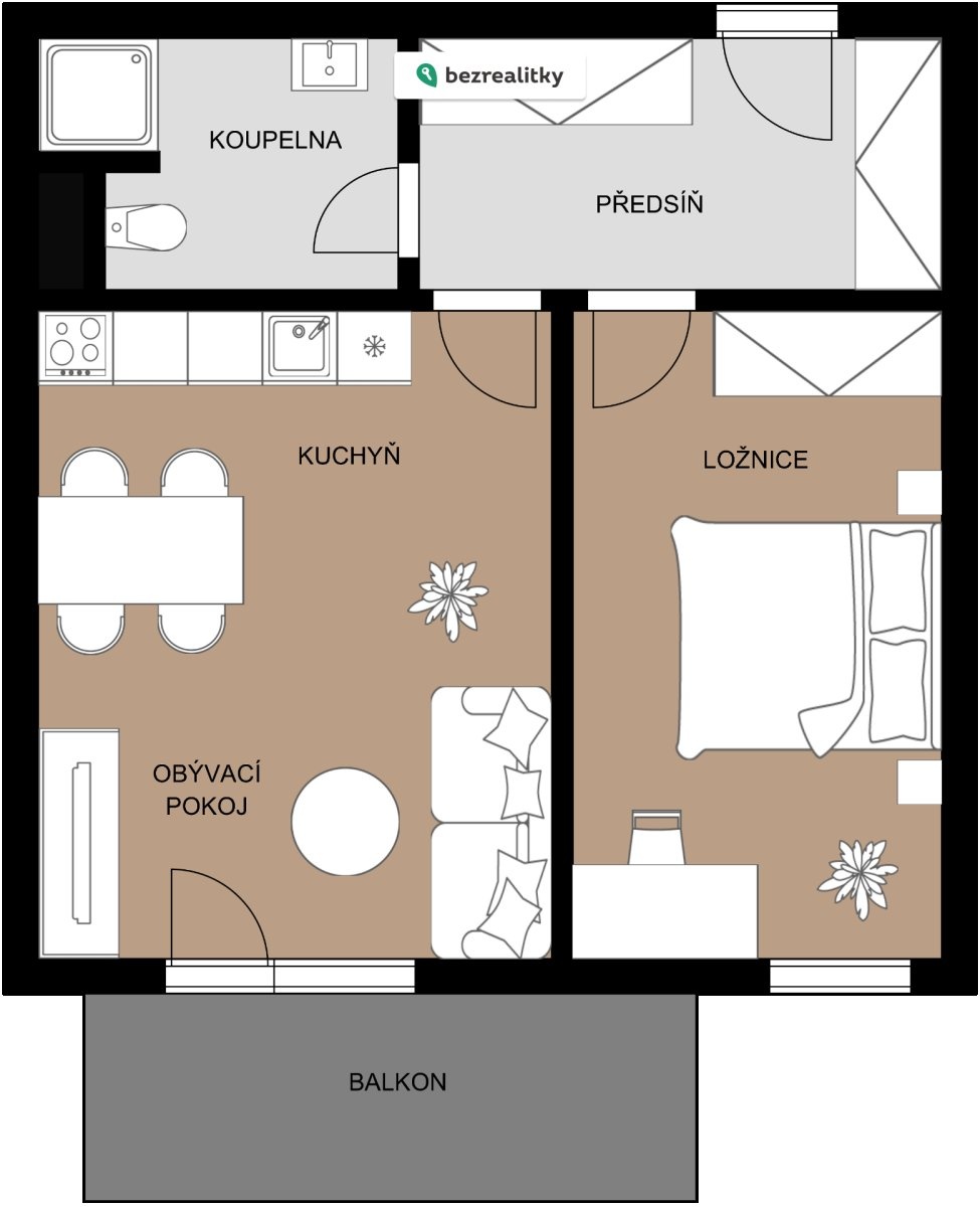 | Dispozice/podlahová plocha: | 2+kk/45 m² |