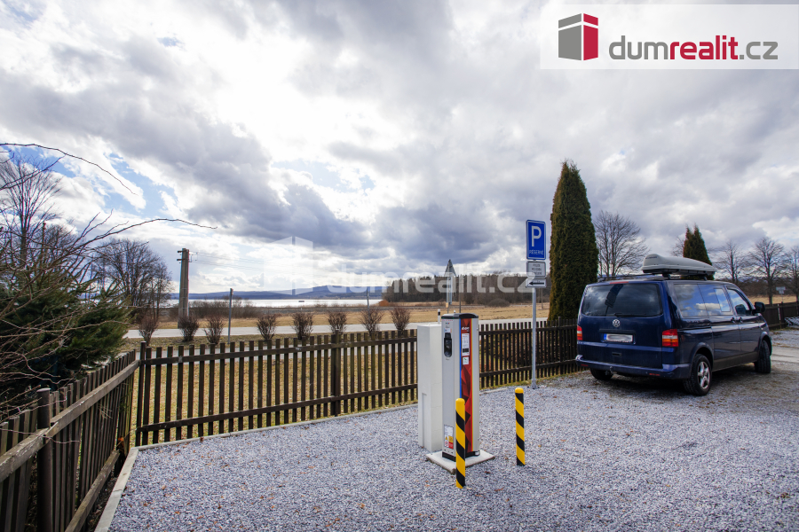 Na pozemku u domu se nachází parkoviště i s nabíječkou na elektromobily, dětské hřiště atd.