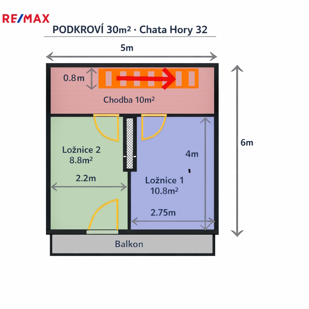 * z jedné ložnice vstup na balkon přes celou šířku východní strany