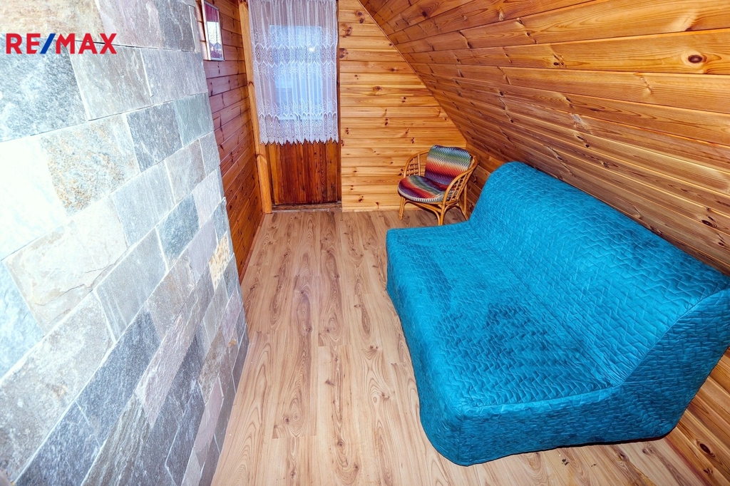 Chata je z větší části i zařízena novým kvalitním nábytkem, V obýváku je např. obrovská rohová pohovka, nebo v podkroví je postel na míru z masívu atd. Tady je dobré informovat že majitelka ráda ponechá kompletní vybavení novému majiteli, podmínky záleží na dohodě obou stran.