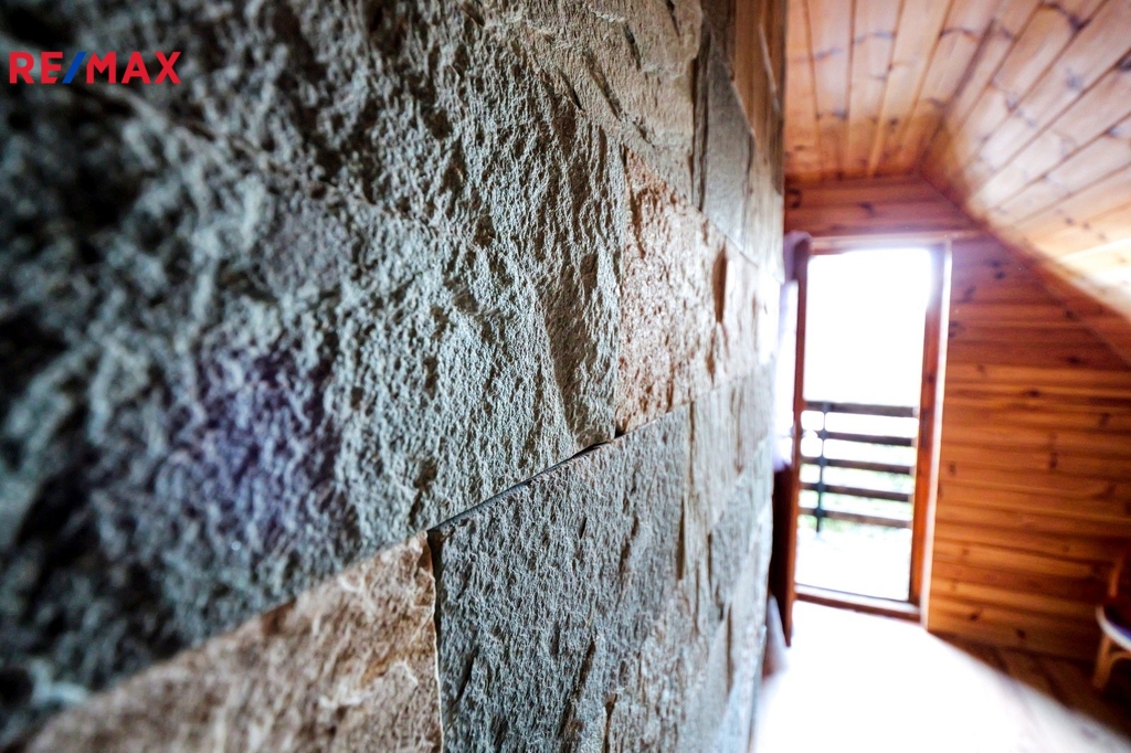Podkroví zaujme výrazným dřevěným obložením stěn nebo luxusním kameným obložením komínového průchodu a má celkově velmi příjemnou atmosféru.