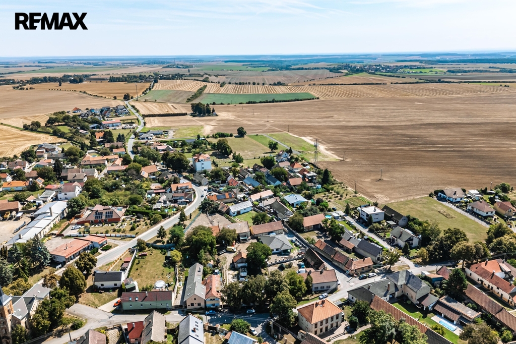 Na pozemku se nachází také původní stodola (neobytná) s potenciálem využití (např. sklad, dílna, půdní prostor). Část se stodolou je možné oddělit na samostatnou stavební parcelu o orientační výměře cca 700 m². Dle územního plánu se jedná o plochy BV – bydlení v rodinných domech (venkovské); inženýrské sítě jsou v dosahu (ze sousedního domu), přípojky zatím nezřízeny. Urbanistické regulativy: max. 25 % zastavění, min. 50 % nezpevněných ploch, max. 2 NP + podkroví, výška římsy do 7 m, doporučená šikmá střecha (sedlová/polovalbová), řadové domy nejsou povoleny; izolační zeleň směrem do volné krajiny je součástí regulativu. Minimální doporučená výměra parcely je 800 m², avšak výjimečně je možná výstavba již od 600 m² – cca 700 m² tedy vyhovuje.