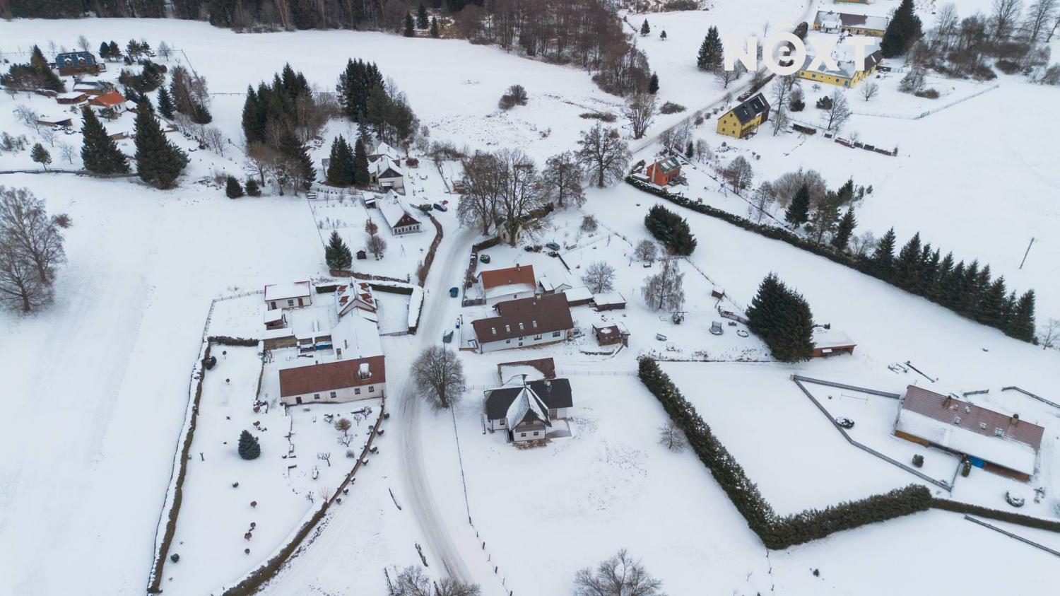Objekt o celkové ploše 403 m² se nachází na rozlehlém pozemku o velikosti 2 756 m² a je v současné době plně funkční jako penzion s vlastním bydlením, což z něj činí mimořádně zajímavou příležitost jak pro vícegenerační rodinné bydlení, tak pro okamžité podnikání v oblasti ubytovacích služeb či investici s dalším rozvojovým potenciálem. Objekt nabízí bytovou jednotku 3+kk o velikosti 117,3 m² určenou k vlastnímu bydlení, samostatnou bytovou jednotku 1+kk o velikosti 36,3 m² s vlastním sociálním zázemím. V prvním patře o velikosti 157,2 m² naleznete tři pokoje k pronájmu. Každý pokoj má vlastní sociální zařízení a k dispozici je společný kuchyňský kout. Celková kapacita objektu je až 22 osob. V suterénu se nachází technické zázemí, dostatek úložných prostor a možnost vybudování další bytové jednotky či dalších pokojů o velikosti 92,9 m², čímž lze objekt dále rozšířit a zvýšit jeho výnosový potenciál. Jedná se o zděnou stavbu napojenou na vodu z vrtané studny, odpad je řešen dvoukomorovou jímkou, vytápění zajišťují krbová kamna v hlavní obytné části a další kamna v suterénu, ohřev vody je řešen bojlerem, dům je tak provozně úsporný a částečně soběstačný.
