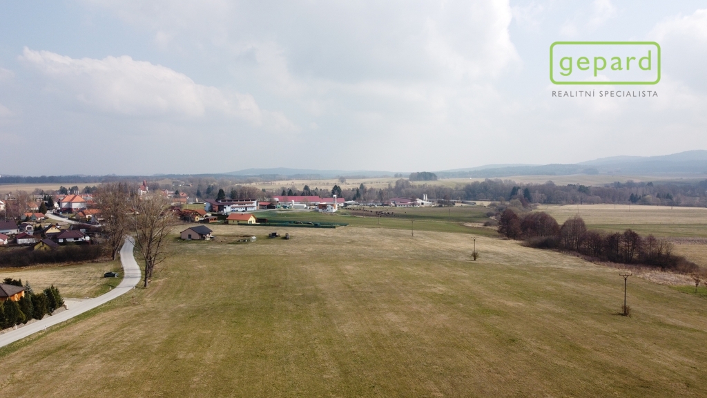 Celková výměra rovinatého slunného pozemku je 7.197m2 přičemž dle ÚP obce je možné využít k výstavbě část pozemku nejblíže k místní komunikaci s výměrou 1.415m2 se zamýšleným sjezdem z této komunikace - řešeno spoluvlastnictvím pozemku určeného pro sjezd.