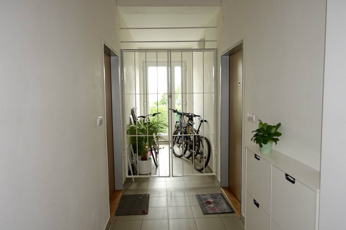 K bytu náleží venkovní parkovací stání. Na patře uzamykatelný prostor pro kola.