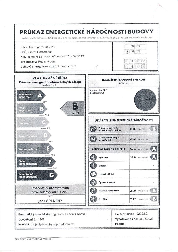 - Energetický ukazatel podle vyhlášky: č. 78/2013 Sb.