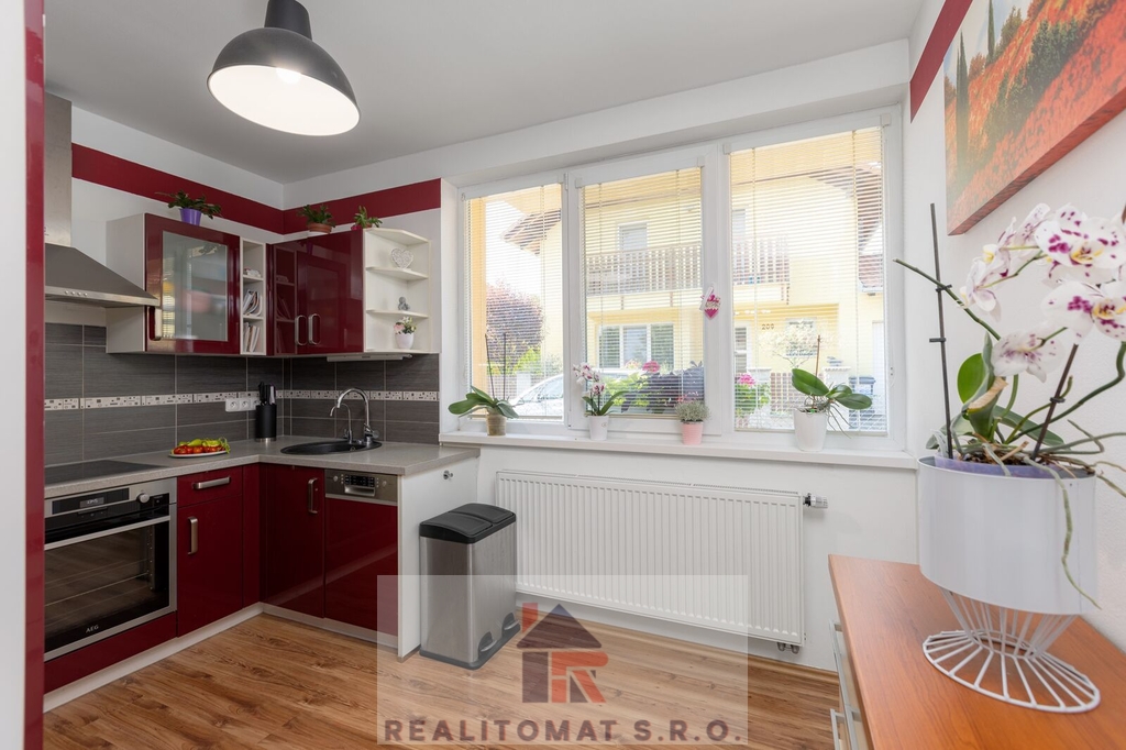 1. nadzemní podlaží: Zádveří s vestavěnou skříní, koupelna se sprchovým koutem a WC, kuchyňský kout vybavený vestavnými spotřebiči, obývací pokoj s přímým vstupem na terasu do udržované zahrady o velikosti 453 m2. Na pozemku se nachází vydlážděné venkovní parkovací stání pro další 2 auta, celkem 36 m2.