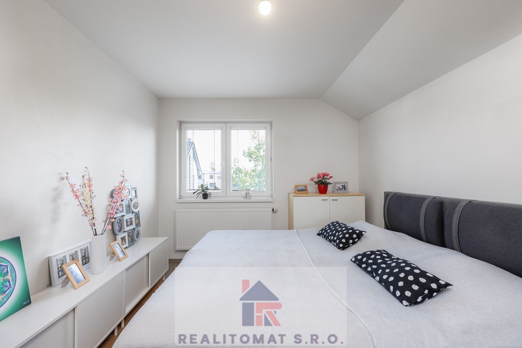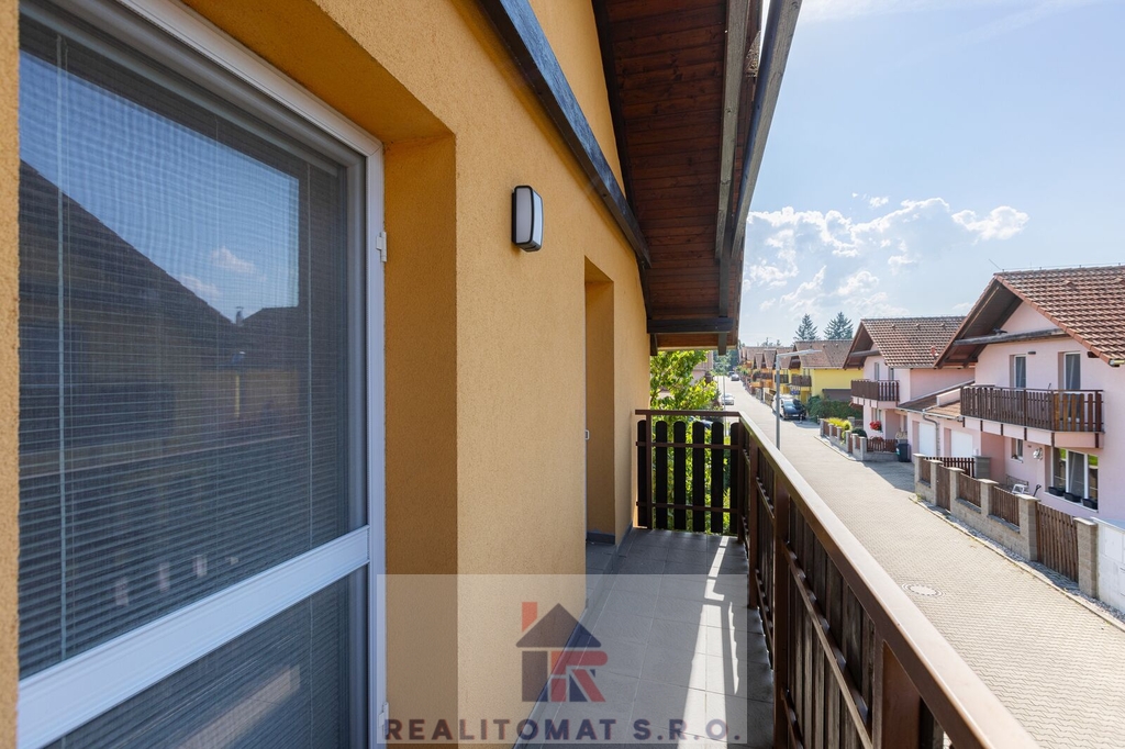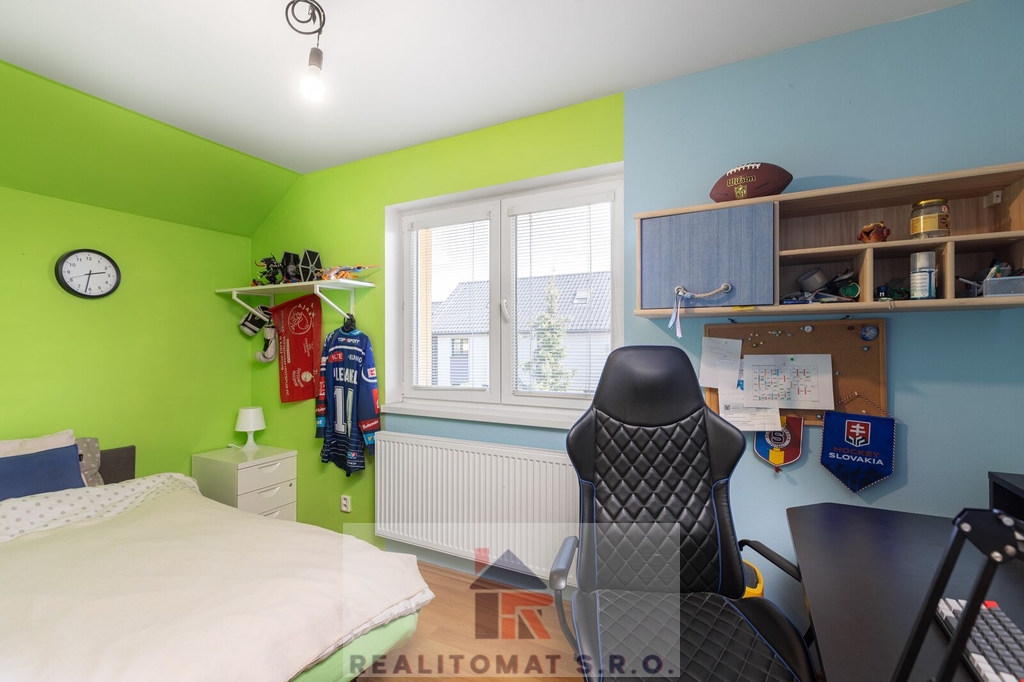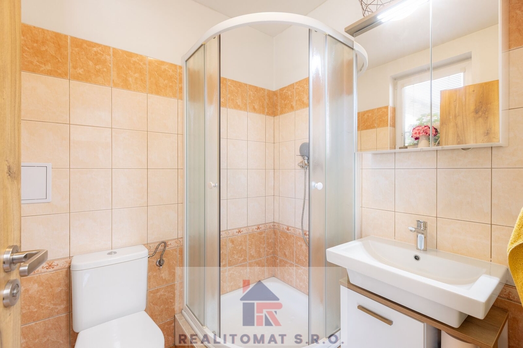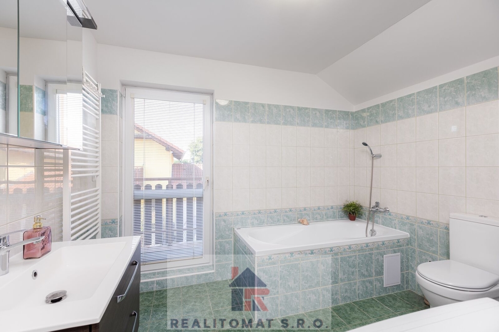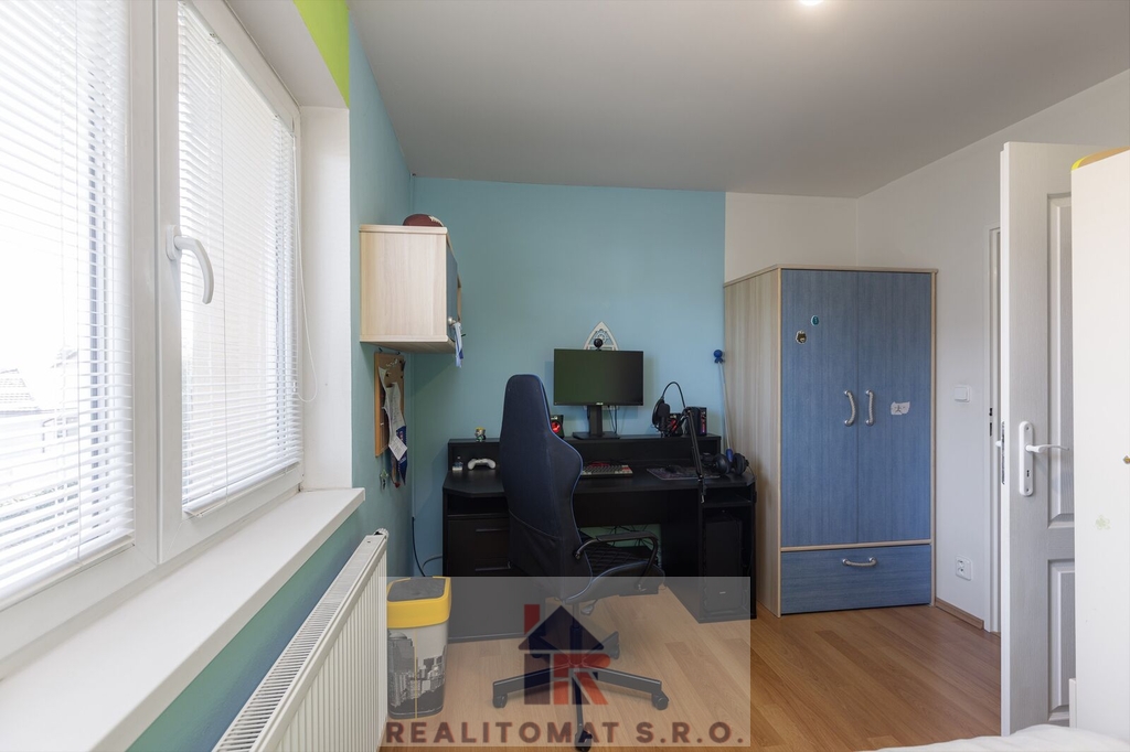 2. nadzemní podlaží: Tři prostorné pokoje a koupelna s WC. Z koupelny a jednoho z pokojů je přístup na balkon. Koupelna je vybavena přípojkou na pračku a technickým zázemím pro vytápění domu a ohřev vody (elektrokotel a elektrický bojler).