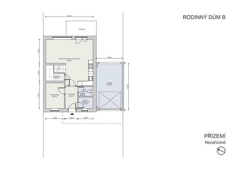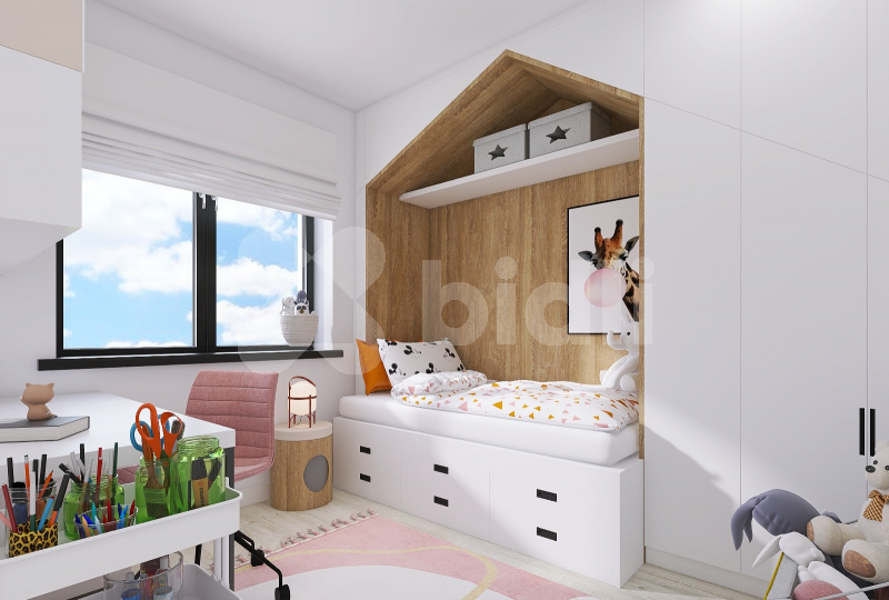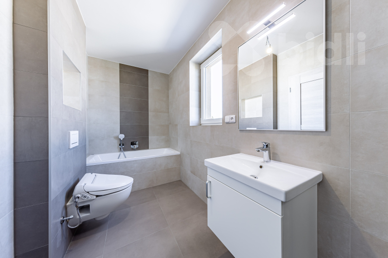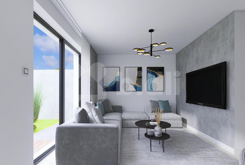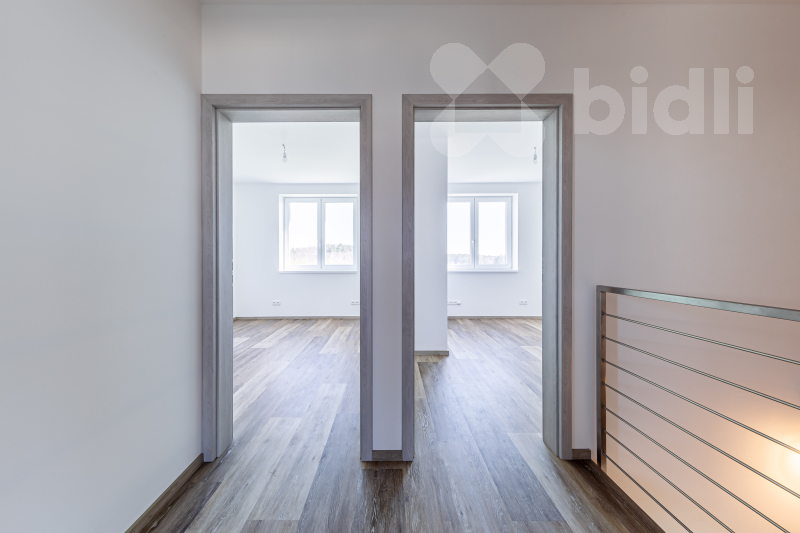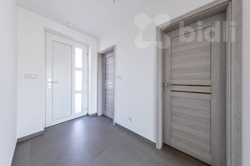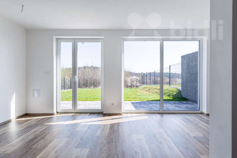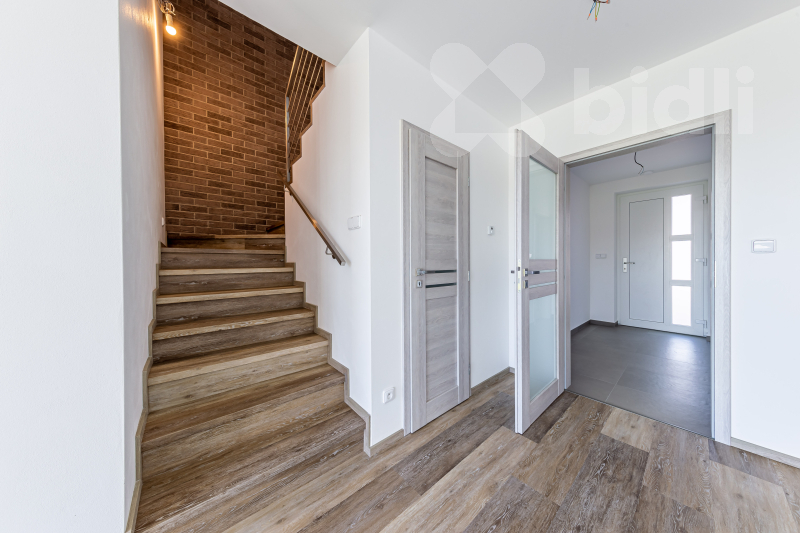 Každý dům má dispozici 5+kk, která zahrnuje čtyři samostatné pokoje a prostorný obývací prostor propojený s kuchyní. Užitná plocha 126 m² poskytuje dostatek místa pro pohodlný rodinný život. Samostatné WC zajišťuje komfort pro každodenní provoz a francouzská okna vedoucí do zahrady přinášejí spoustu denního světla a propojují interiér s přírodou.