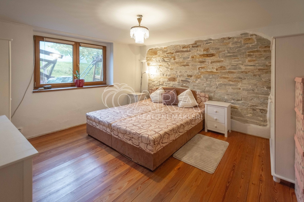 Dispozice domu na konci slepé ulice, který v roce 2012 prošel zdařilou rekonstrukcí. V přízemí, kde zůstane většina vybavení: vstupní chodba se šatnou, obývací pokoj spojený s kuchyní a vstupem do zadní zahrady se vzrostlými stromy, technická místnost, ložnice, koupelna s vanou a samostatné WC. V horním patře tři místnosti, tedy dva pokoje a pracovna se skladem, kde se dá udělat další obytná místnost. Venku sklad a garáž.