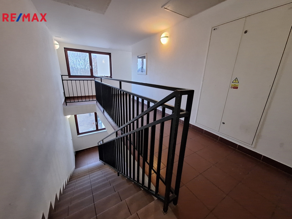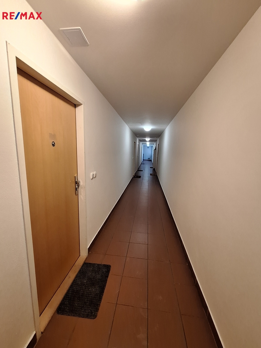Byt se nachází ve třetím nadzemním podlaží, má prostornou vstupní chodbu s praktickou vestavěnou skříní. Dále vzdušný a světlý obývací pokoj s kuchyňským koutem vybaveným vestavěnými spotřebiči.