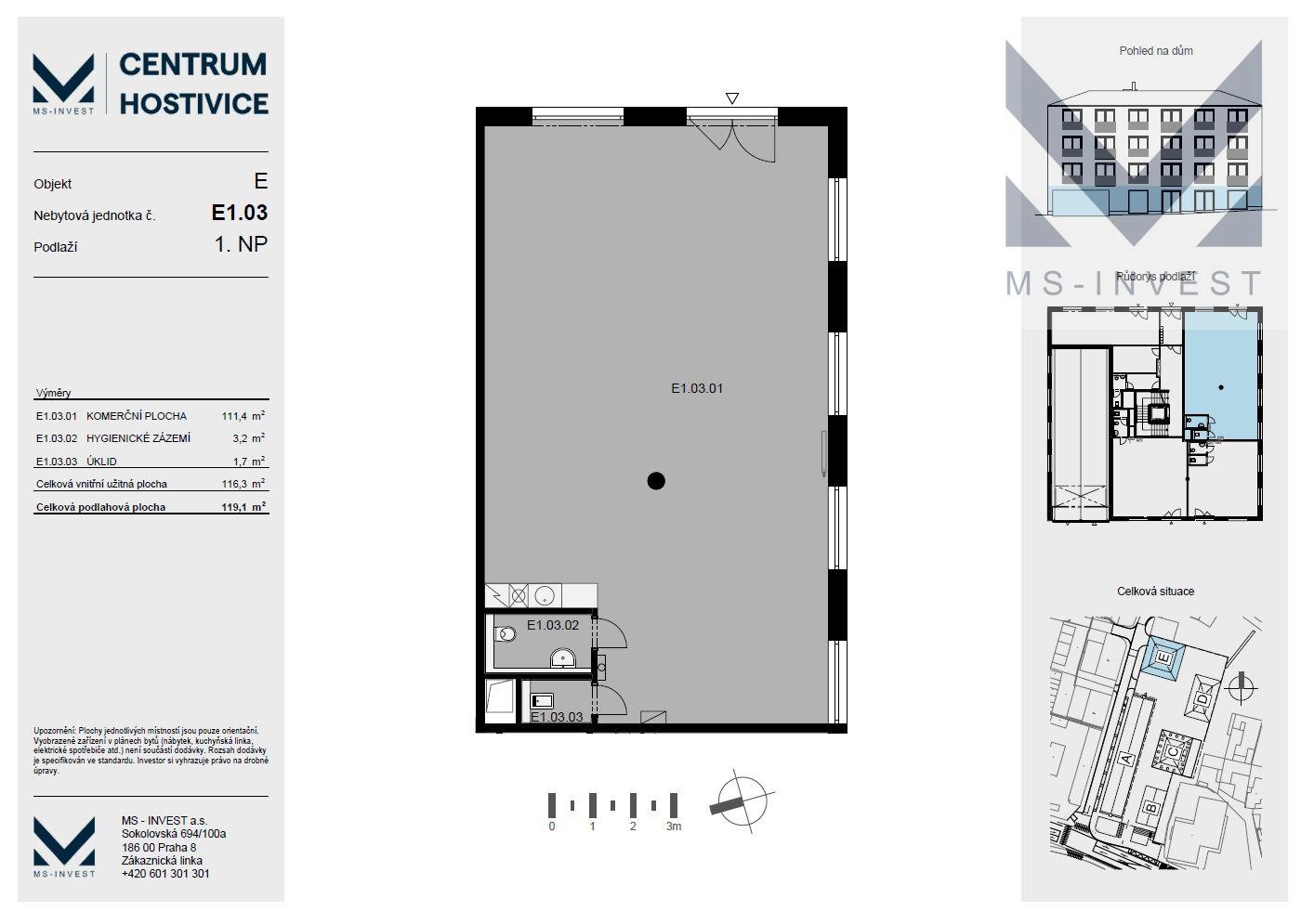 - Plocha kanceláří: 119 m²