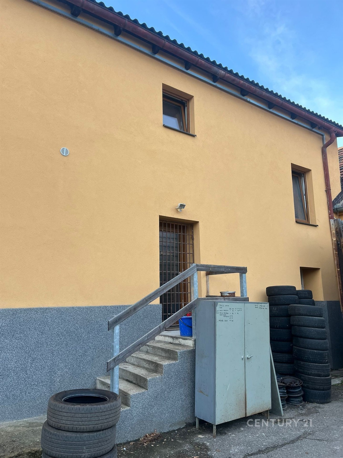 První patro má šest místností, všechny obloženy 5 cm polystyrenovou izolací, díky které se daří v rámci možností hospodárně topit na denní i noční proud. V krajní, největší místnosti je masivní komín cca 150x150cm; po jehož vyvložkování se nabízí např. vybudování plynové kotelny ve sklepě pro celý objekt (plyn je přiveden k patě domu). V patře je natažená městská voda jako příprava pro kuchyňku, je zde samostatné WC, a také koupelna s umyvadlem, WC a sprchovým koutem. Ve dvoře objektu, za uzamykatelnou branou, kudy pohodlně projede např. Avia, menší nákladní auta dodavatelů nebo stavební technika, má nájemce zajištěna parkovací místa.