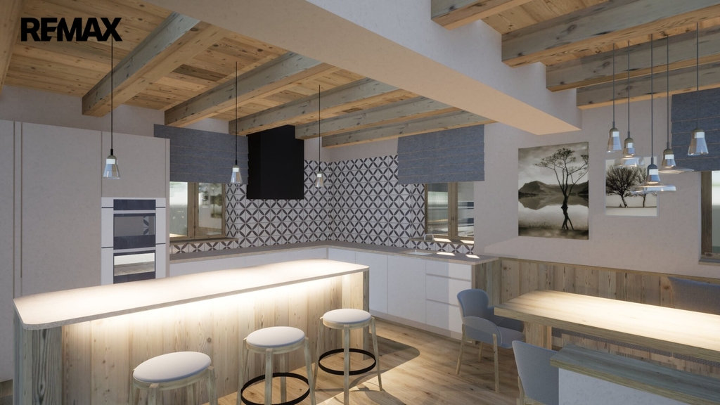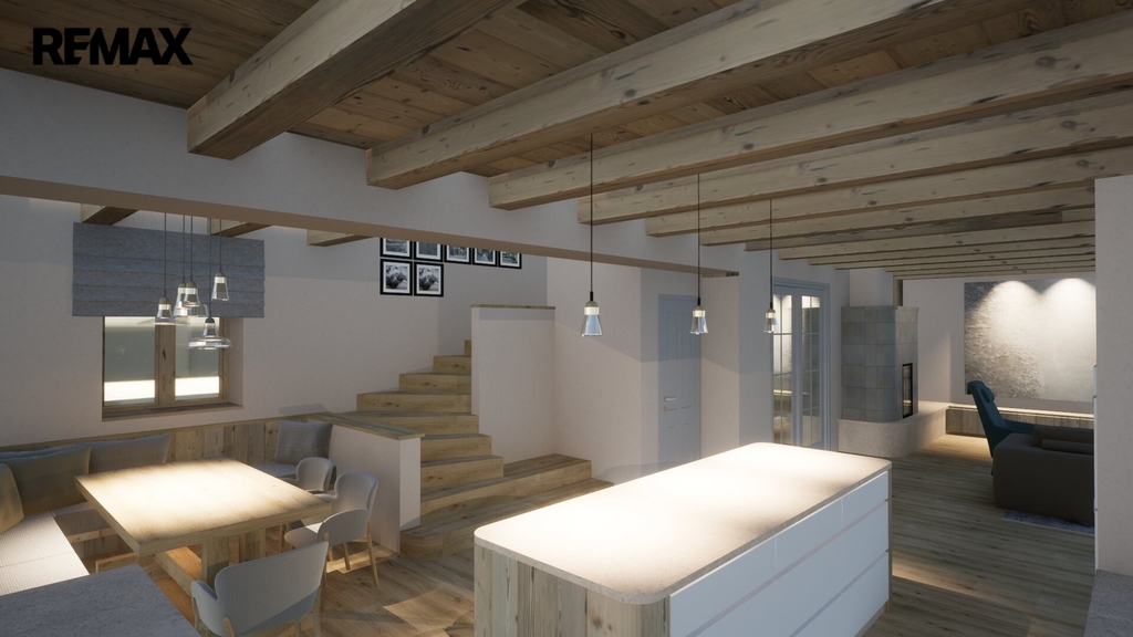 Dvoupodlažní stavba nabídne komfortní prostor i pro větší rodiny. V přízemí domu je k dispozici koupelna s wc, která je přístupná z prostorné chodby s vestavěnými skříněmi. Dvoukřídlími dveřmi vstoupíte do velkorysého a velmi útulného prostoru kuchyně s jídelnou a obývacího pokoje s krbem. Z kuchyně je přístupná příruční špajz. V přízemí je rovněž k dispozici technická místnost. V podkroví je soukromá zóna, ve které se nachází ložnice, koupelna, samostatné wc a dva dětské pokoje. Na prostorný obývací pokoj v přízemí navazuje prostorná krytá terasa s východem na zahradu, kterou vám rovněž můžeme zrealizovat dle vašich představ. Stavba domu je již v plném proudu, drobné klientské změny jsou zatím možné. Termín dokončení 4/2026.