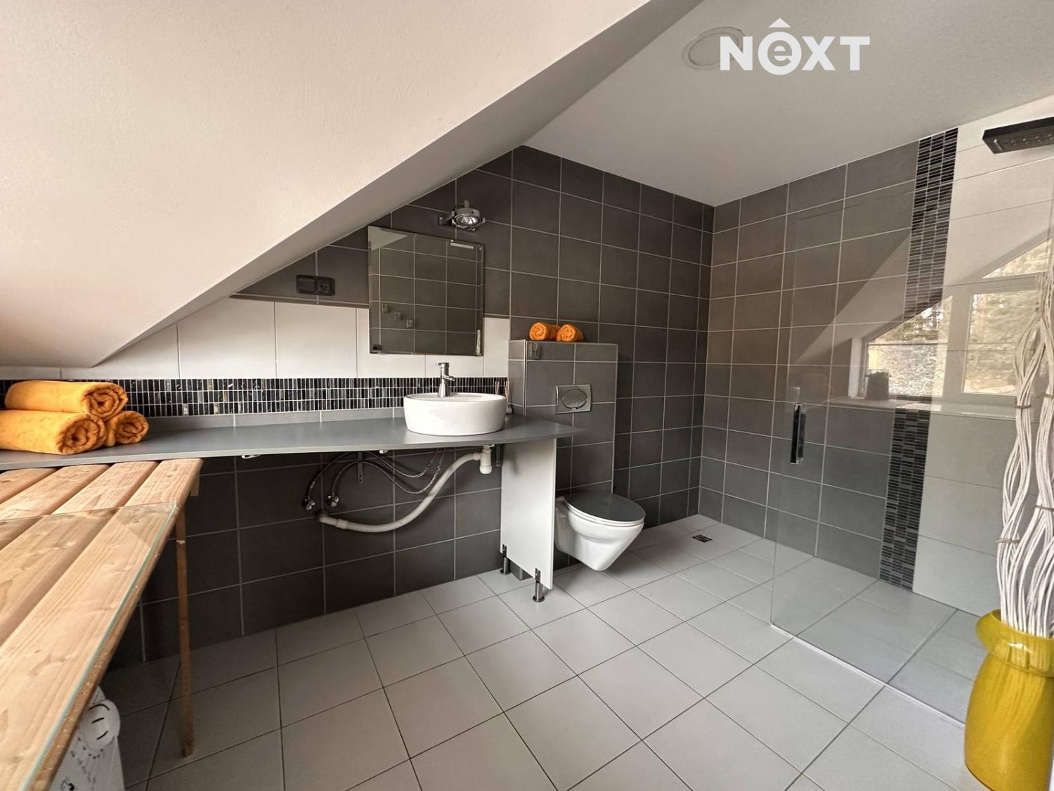 Bonus: K bytu je možné využít i menší dvorek přístupný z domu a zároveň dolní část rozlehlé zahrady – ideální například na grilování nebo letní posezení.