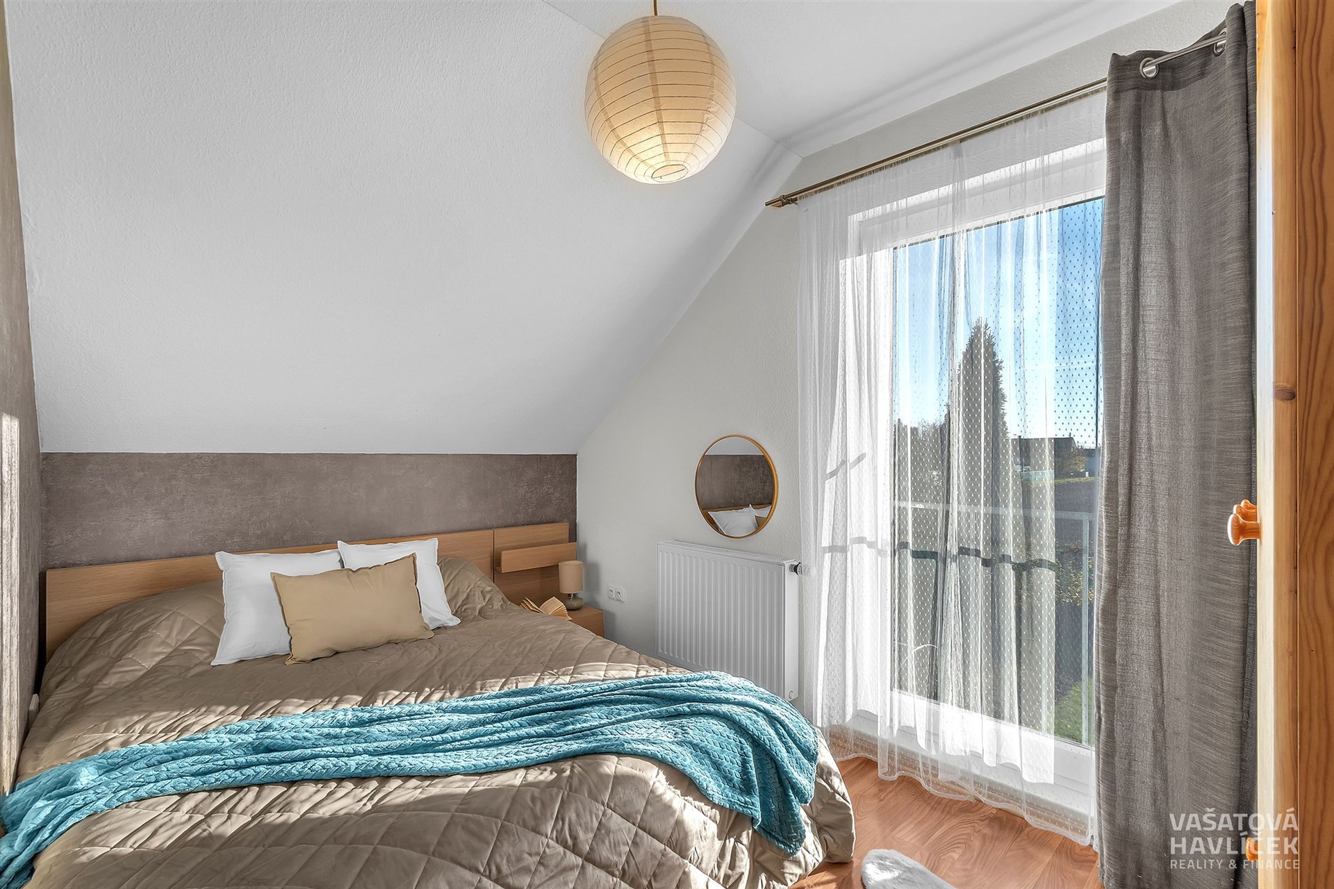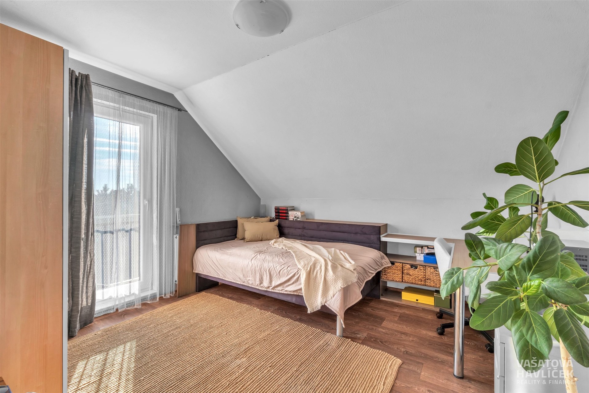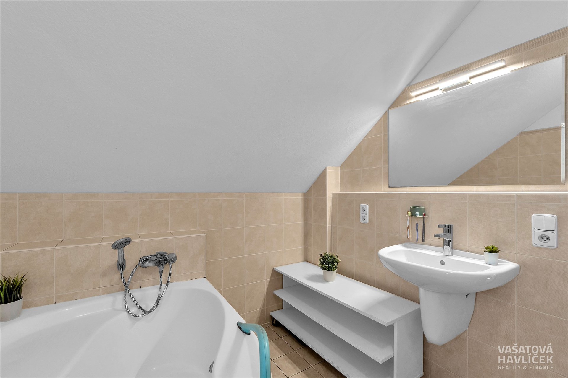 První patro nabízí klidovou zónu s chodbou a přístupem do půdního prostoru. Najdete zde tři samostatné pokoje, prostornou koupelnu s vanou a samostatné WC.