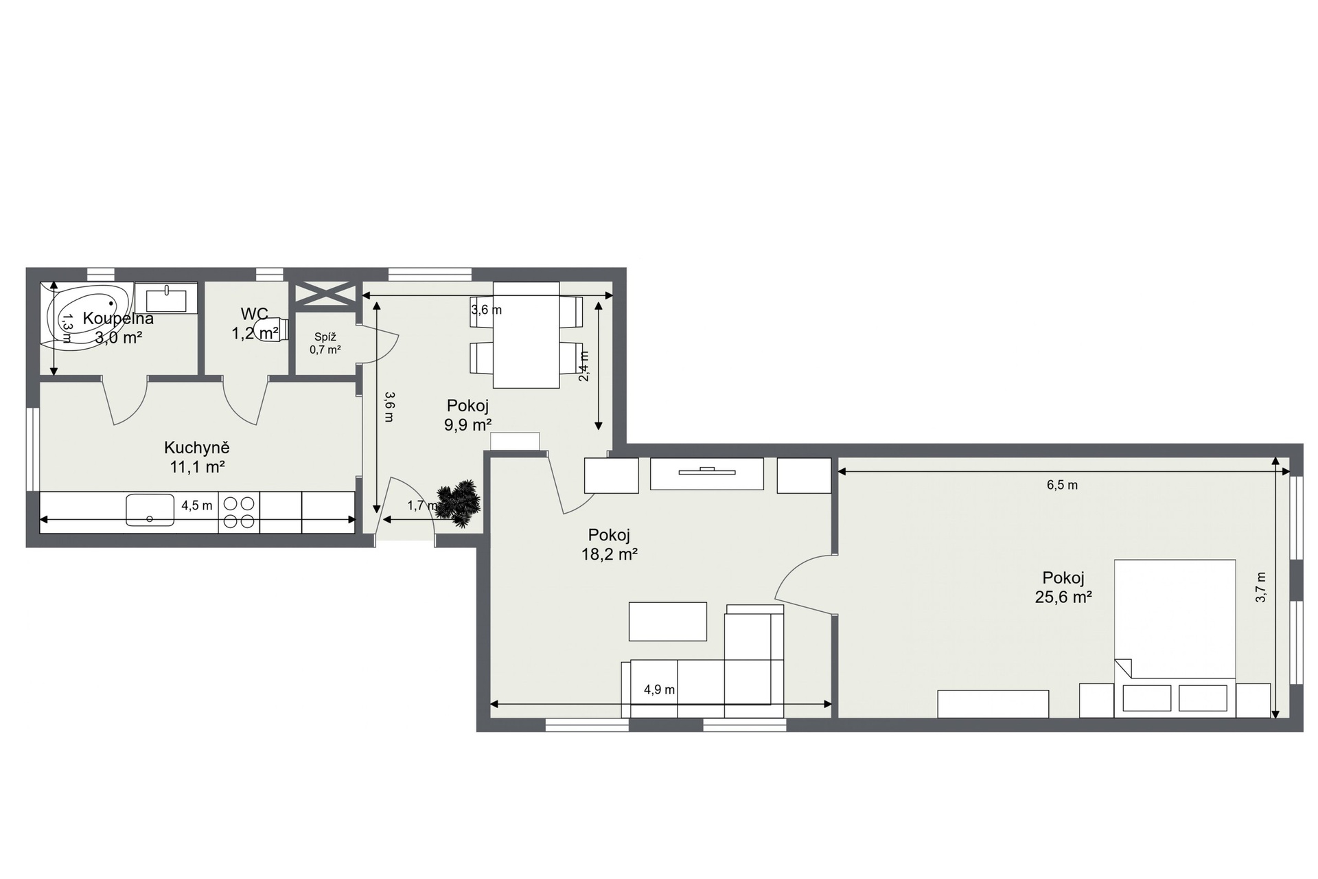 - Dispozice bytu: 3+1