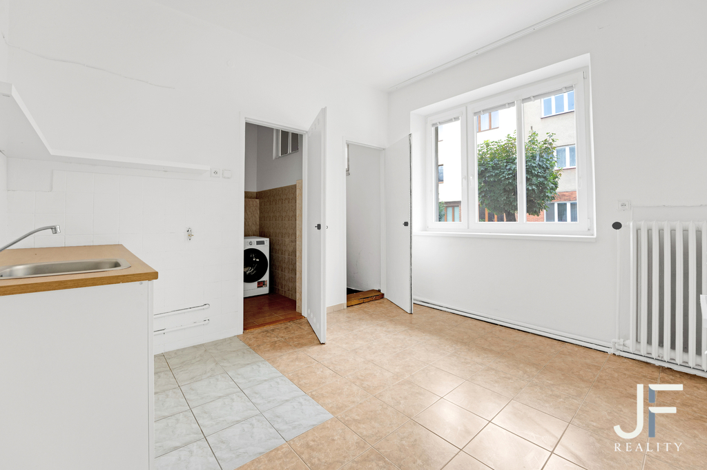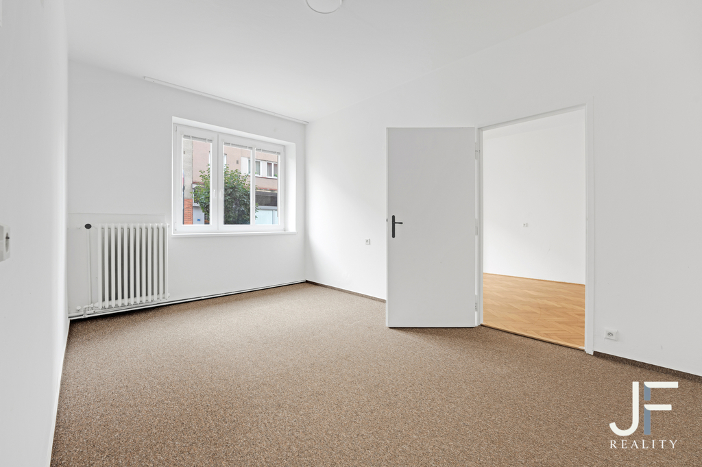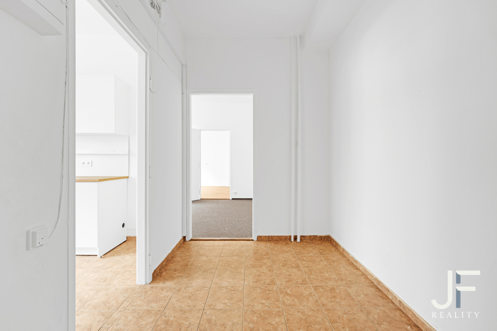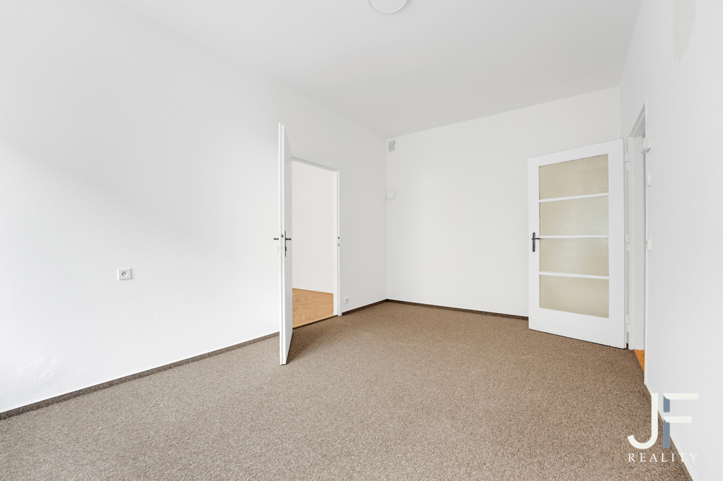 Byt má 66 m² užitnou plochu a dvě průhozí ložnice, k tomu má prostornou sklepní kóji.