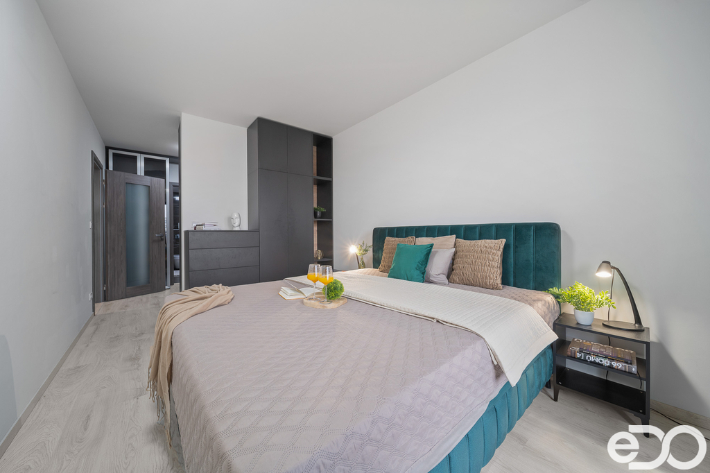 Nejedná se o standardní developerské provedení. Byt byl kompletně řešen s profesionální interiérovou designérkou a zahrnuje řadu nadstandardních prvků a příplatkových materiálů, které posouvají úroveň bydlení o několik tříd výš.