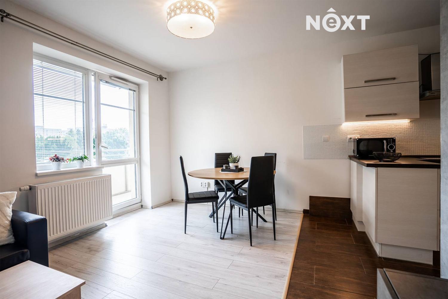 Dispozice bytu tvoří vstupní chodba s úložnými prostory, prostorný obývací pokoj s moderní kuchyňskou linkou a jídelním koutem, ložnice se vstupem na terasu, koupelna s vanou, samostatná toaleta a komora využitelná jako šatna či sklad. Kuchyňská linka je vybavena vestavnými spotřebiči, obývací část nabízí dostatek prostoru pro odpočinek i posezení s přáteli. Byt, který lze přepažit na původní dispozici 3kk, je ve velmi dobrém stavu a připravený k nastěhování.