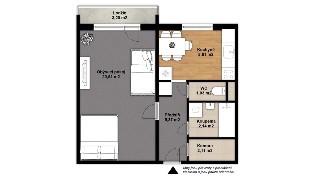 - Lodžie: 3 m²