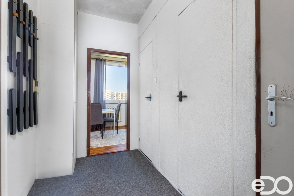 Byt o celkové ploše 44 m² se nachází v 7. nadzemním podlaží (posledním) panelového domu s výtahem. Samotná bytová jednotka má 39,76 m², dále k ní náleží lodžie (3,2 m²) a sklep (1,44 m²).