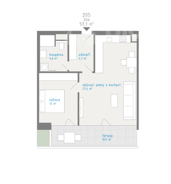 | Dispozice/podlahová plocha: | 2+kk/53 m² |