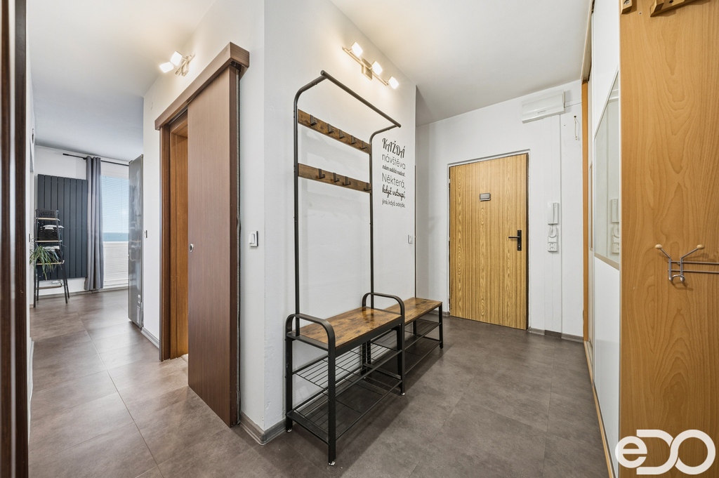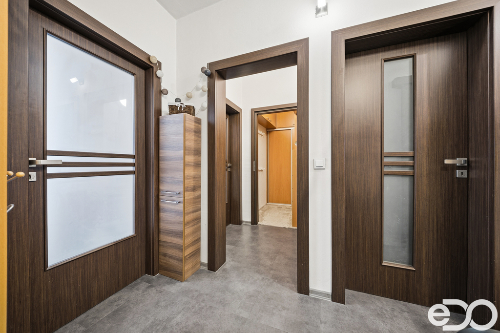 • Byt se nachází v uzavřené chodbě sdílené pouze se třemi byty, k dispozici je také společná komora na patře.