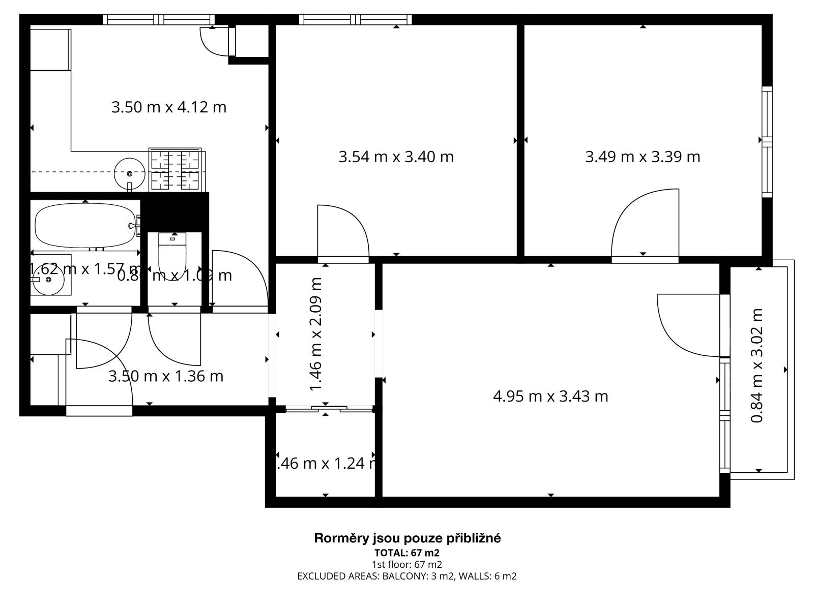 - Užitná plocha: 66.3 m²