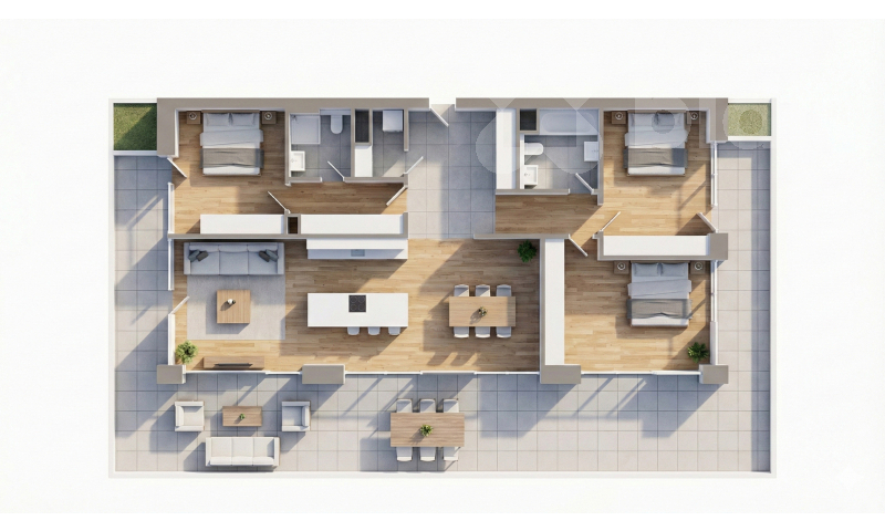 Díky těmto prvkům projekt nabízí nejen moderní bydlení, ale i nižší provozní náklady a vyšší míru bezpečí.