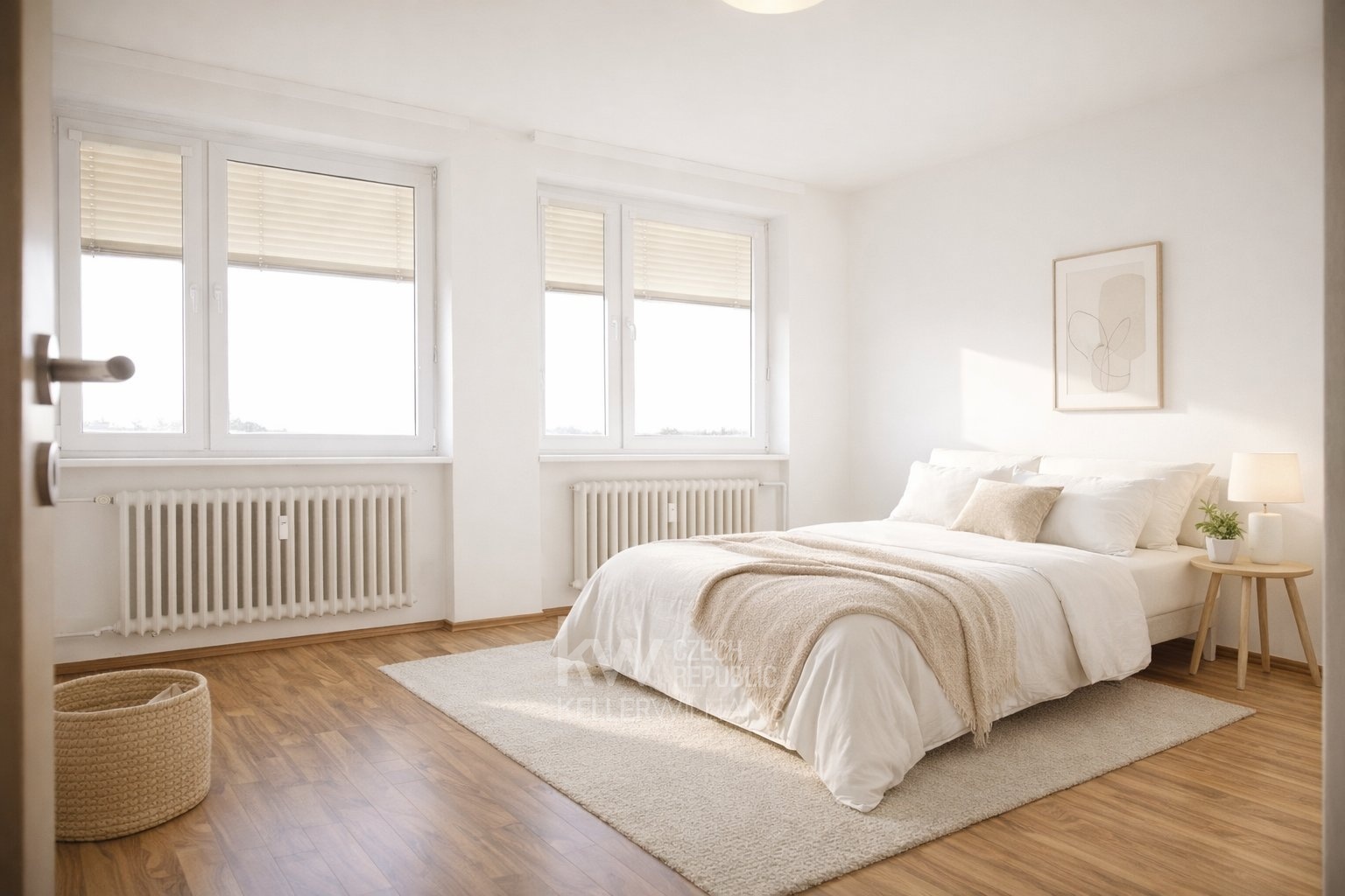 Ložnice a Dětský Pokoj: Byt disponuje dvěma samostatnými pokoji, které lze využít jako ložnice, dětský pokoj nebo pracovnu. Oba pokoje jsou světlé a nabízejí klidné zázemí pro odpočinek či práci.
