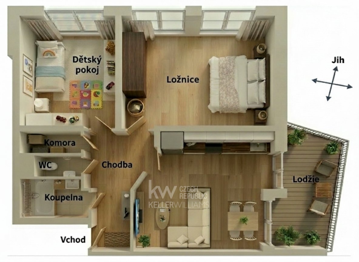 - Dispozice bytu: 3+kk