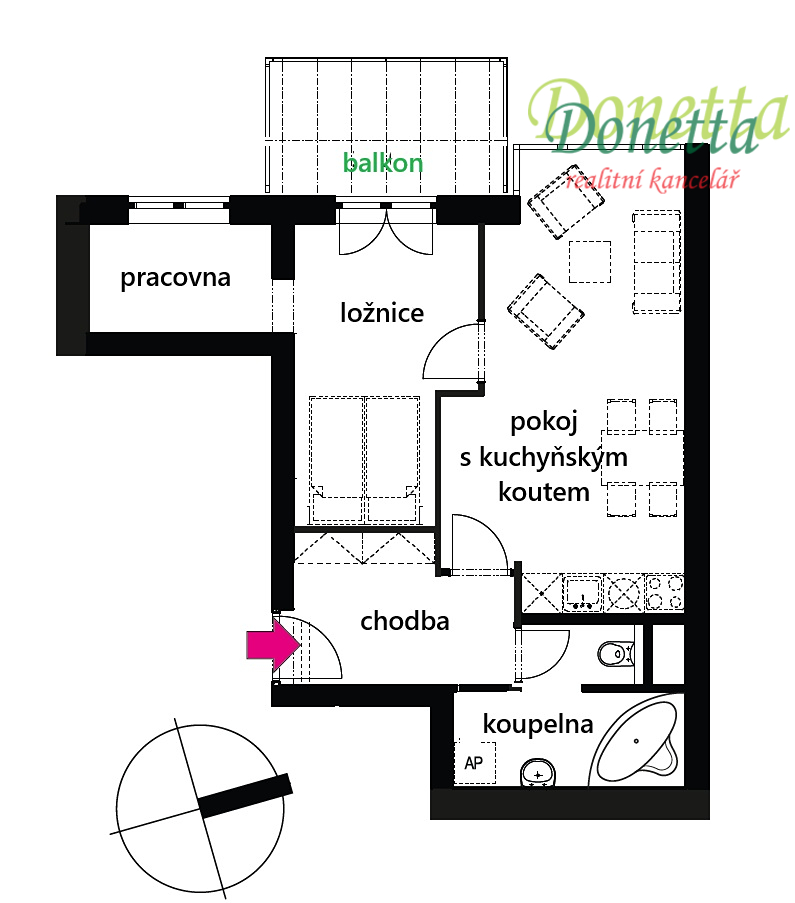 - Dispozice bytu: 2+kk