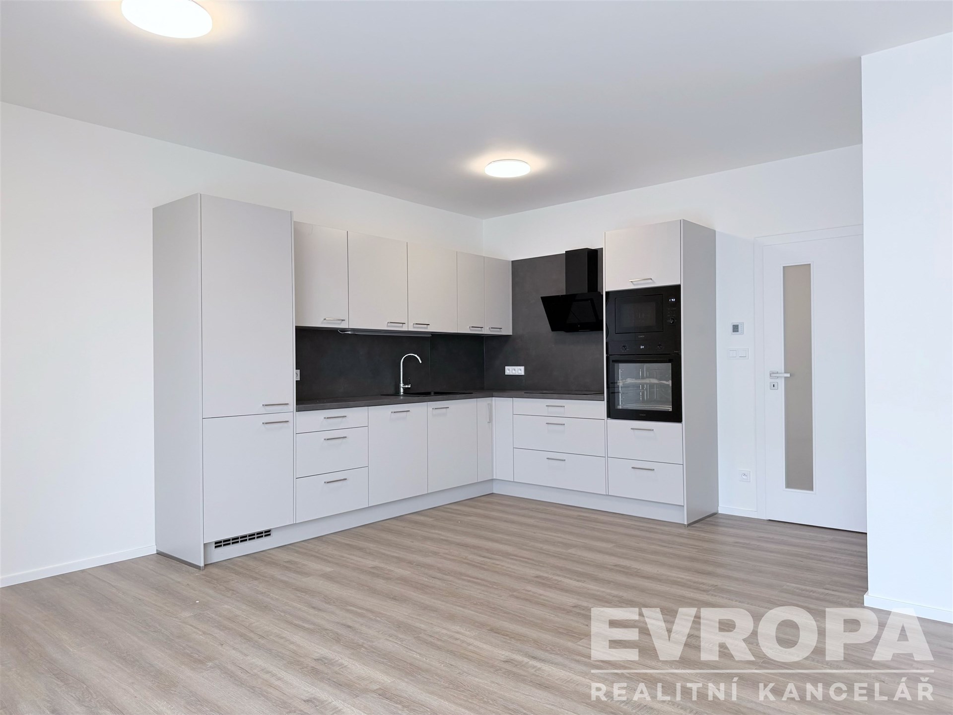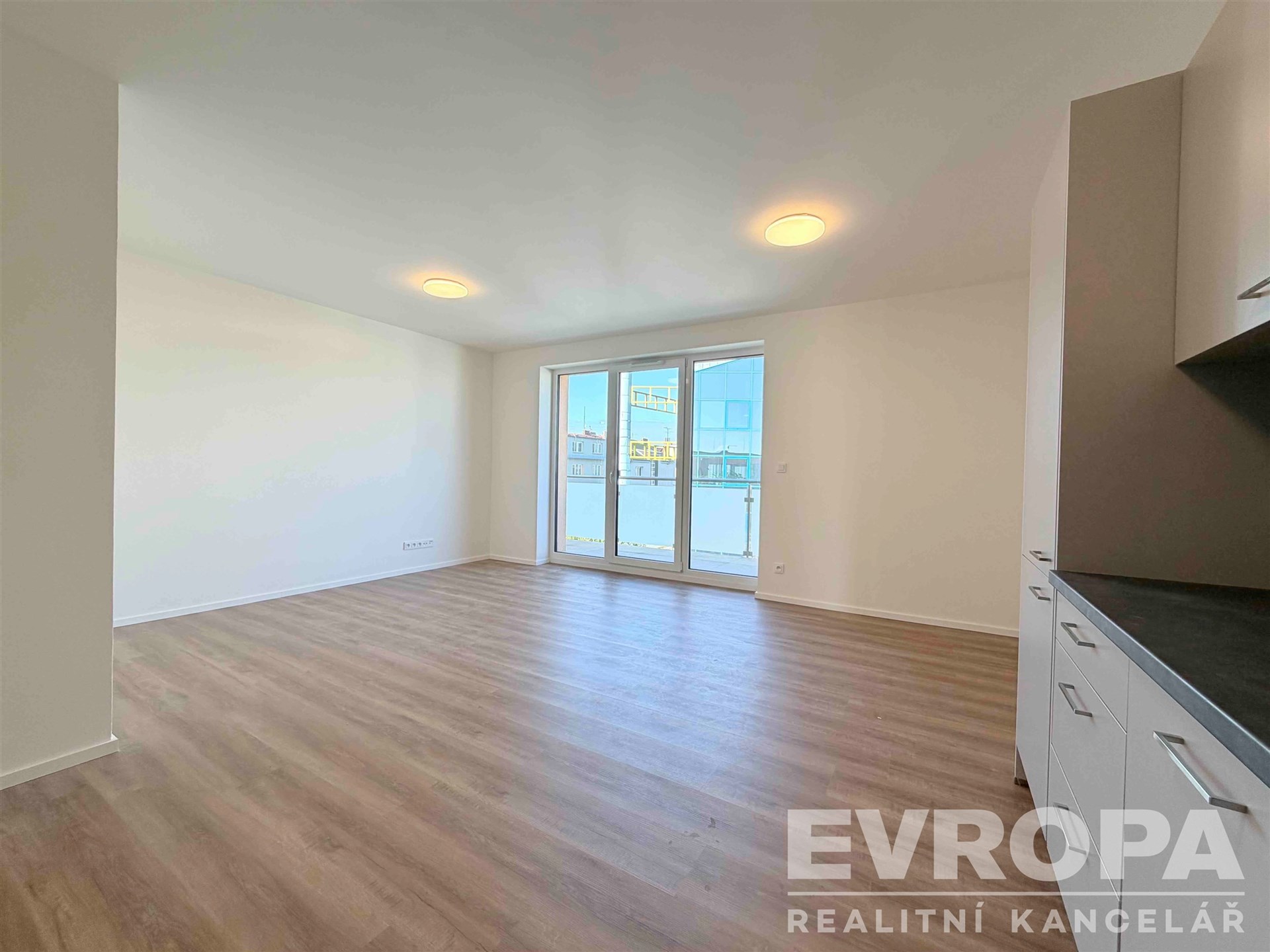 Dominantou bytu je prostorný obývací pokoj se vstupem na terasu o výměře 7 m² a kuchyňským koutem, který je vybaven kuchyňskou linkou se spotřebiči (varná deska, trouba, digestoř, lednice, myčka).