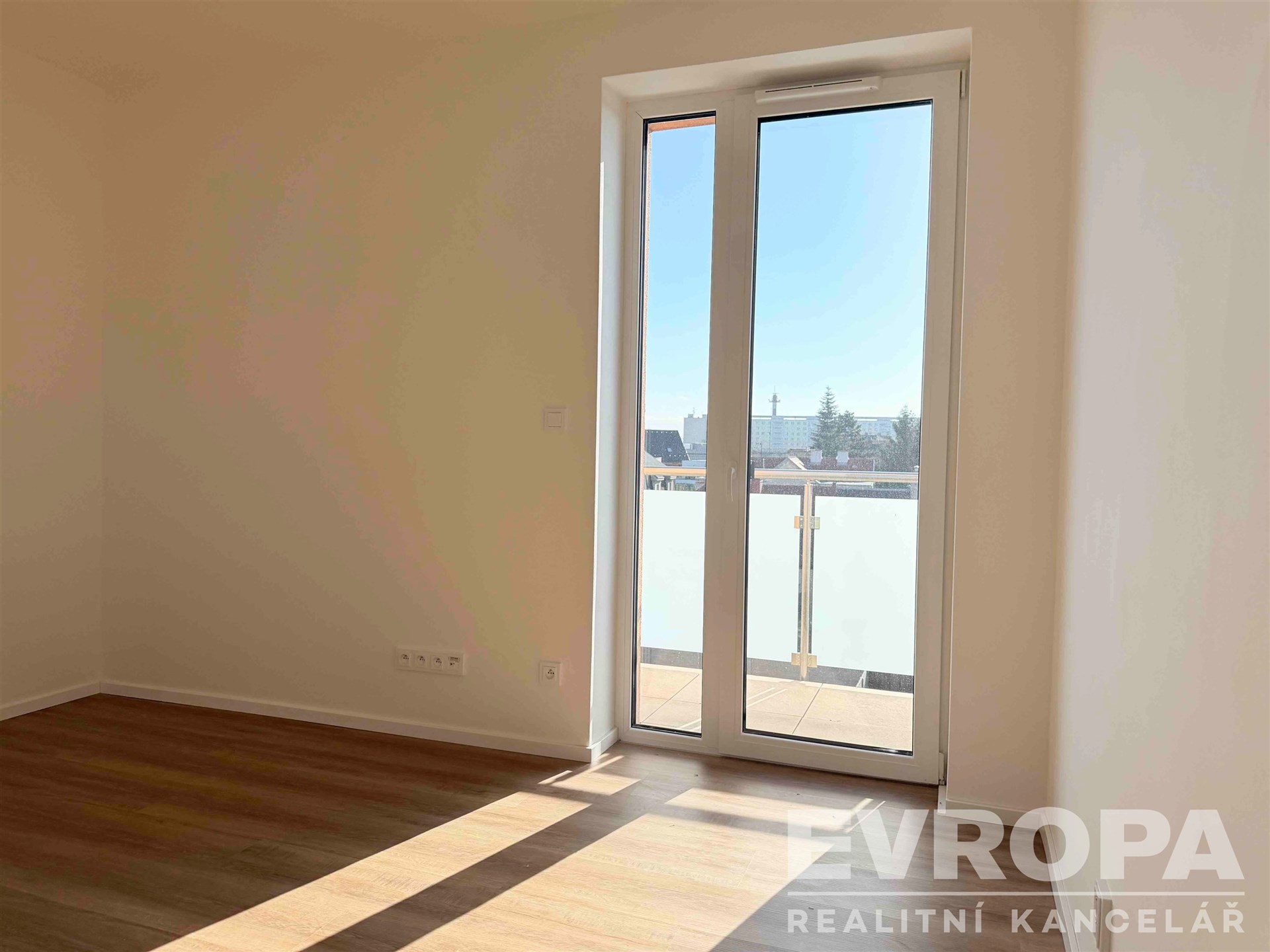 Ložnice je samostatná, světlá a nabízí dostatek prostoru pro manželskou postel i úložné prostory. Z ložnice je vstup na balkón s výhledem do travnatého vnitrobloku.