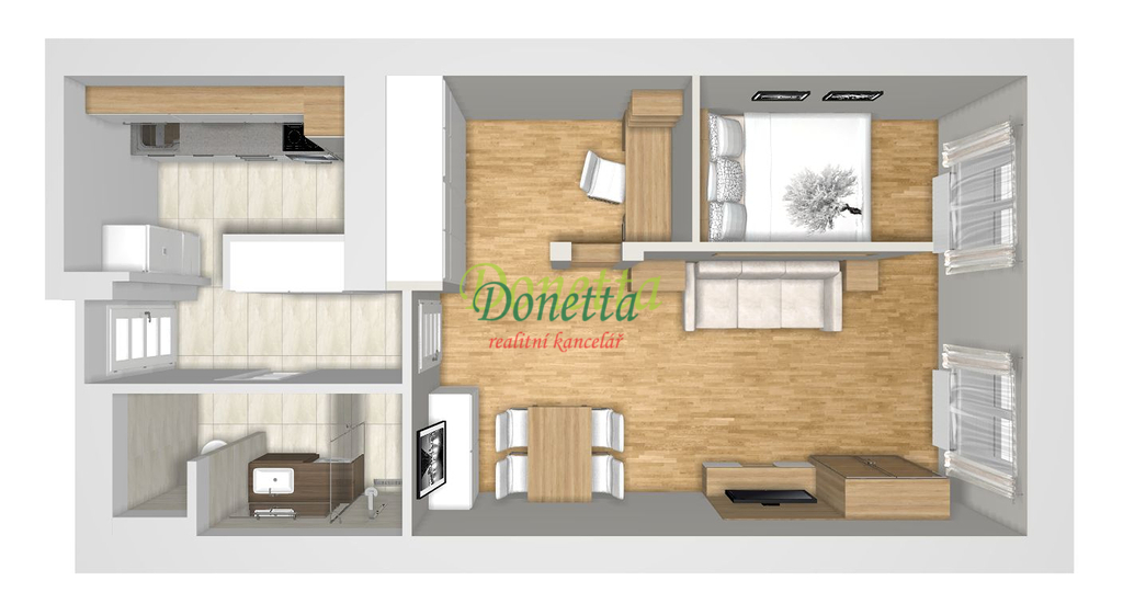 - Dispozice bytu: 2+kk