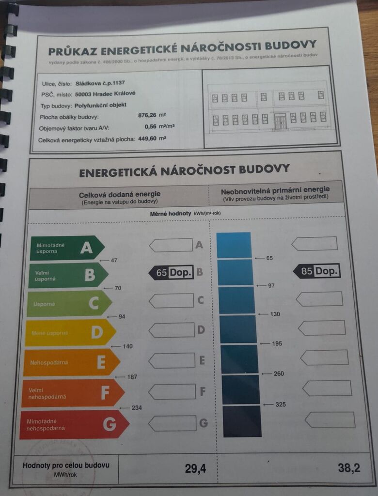 - Ukazatel energetické náročnosti budovy: 29.4 kWh/m²