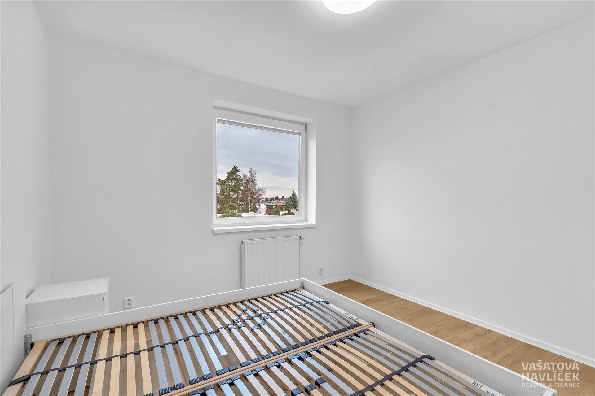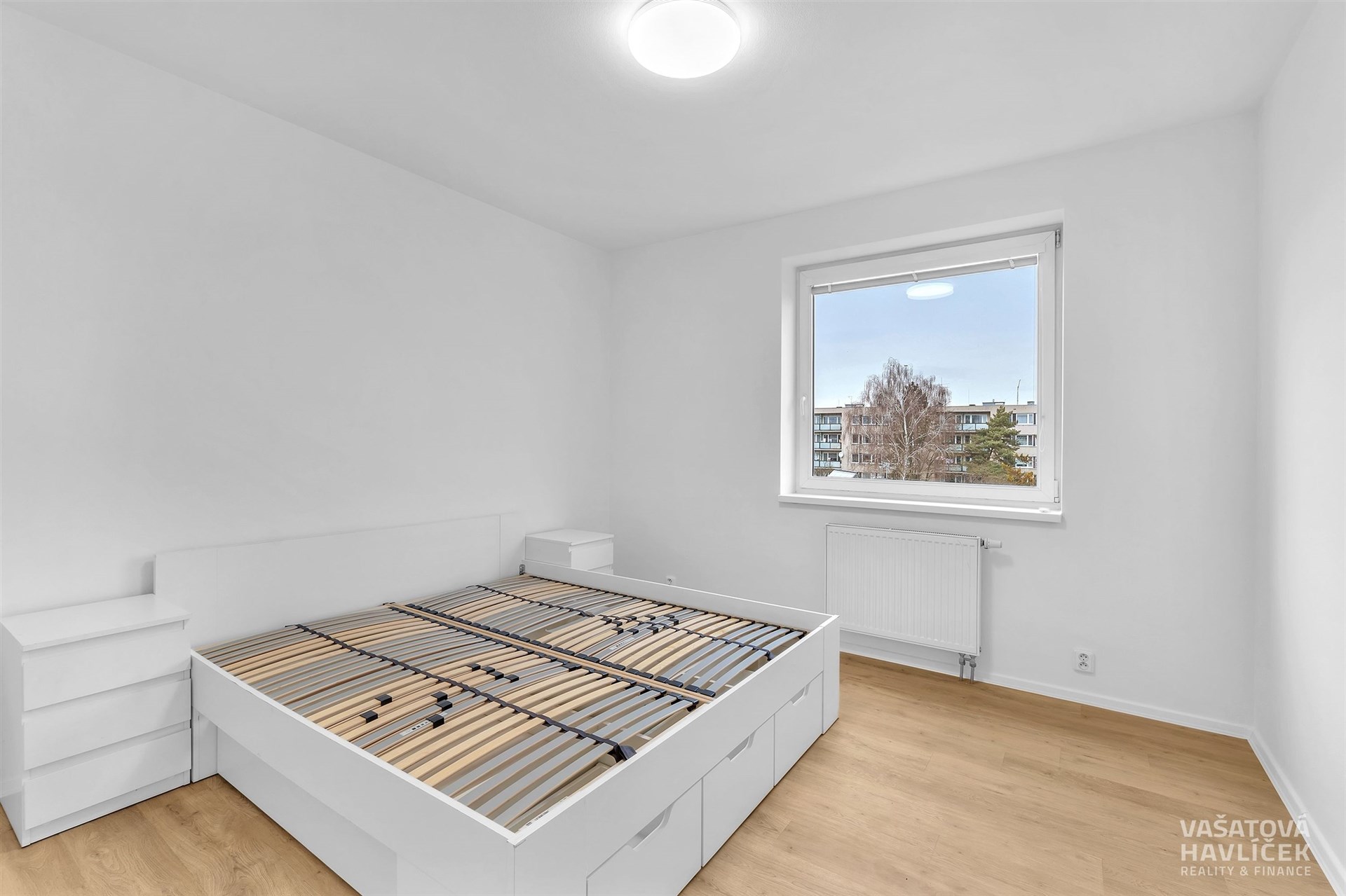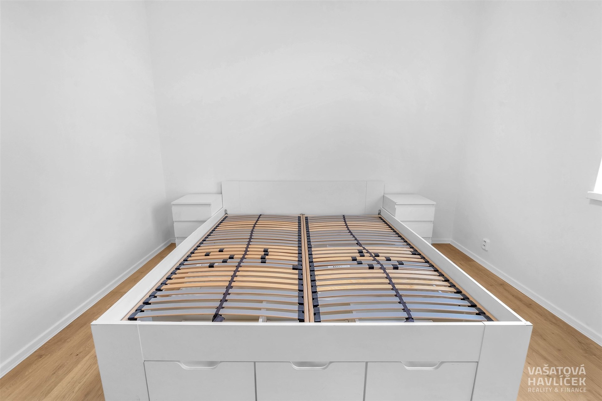 > postel s roštem, noční stolky